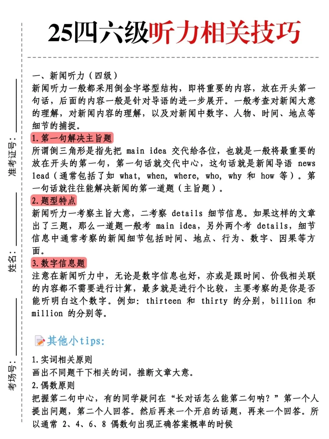 ✅《25 四六级听力相关技巧》:三步预判答案,告别 “听天书”!