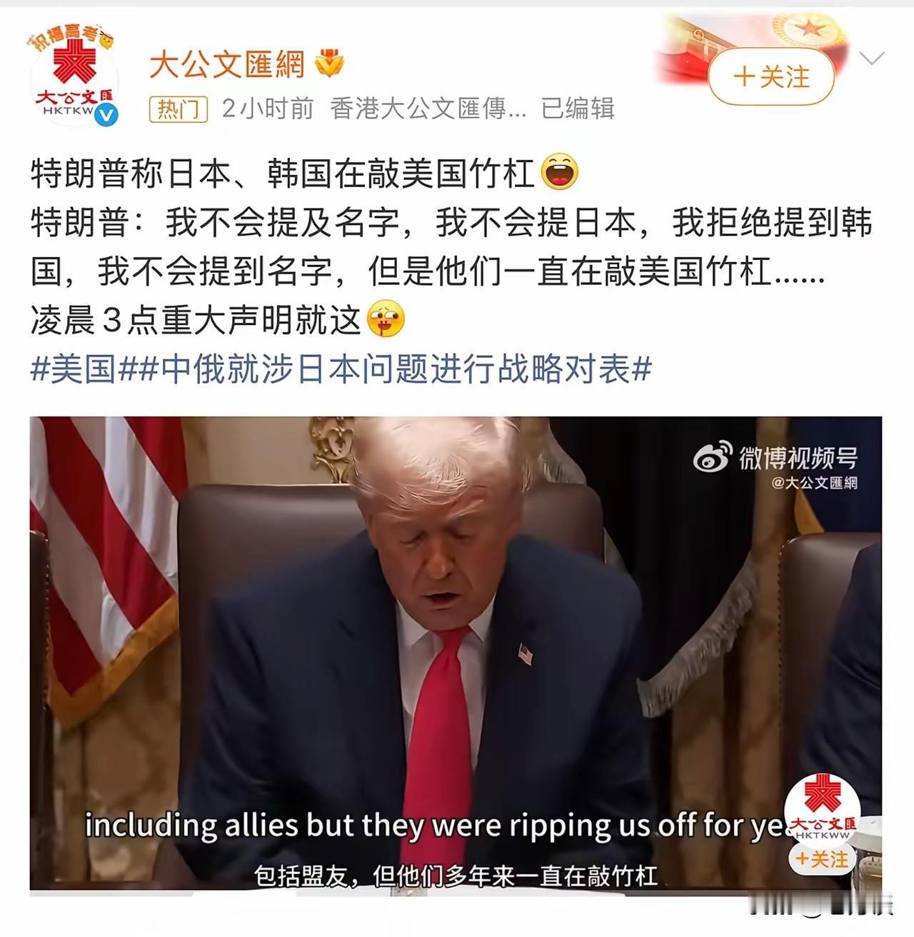 韩国和日本总以为自己是美国的小弟,美国会照着自己,为此,为了向美国献殷勤,他们向美国投资,让美国军队在本国驻军等等。但是他们在美国的眼中,原来只不过是敲竹杠的角色。美国总统特朗普说,我不会说日本,也不会说韩国在敲美国的竹杠。不知道韩国总统和日本首相看到特朗普如此的言论会作何感想,毕竟这两个国家是真心跟美国绑在一起,也是真心希望得到美国的帮助,以保证他们在亚洲的地位。然而在特朗普的眼中,这两个国家其实就是来敲竹杠的,听完了真是伤心[大笑]