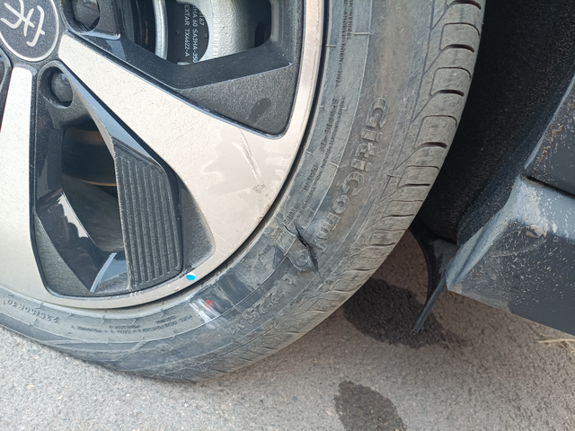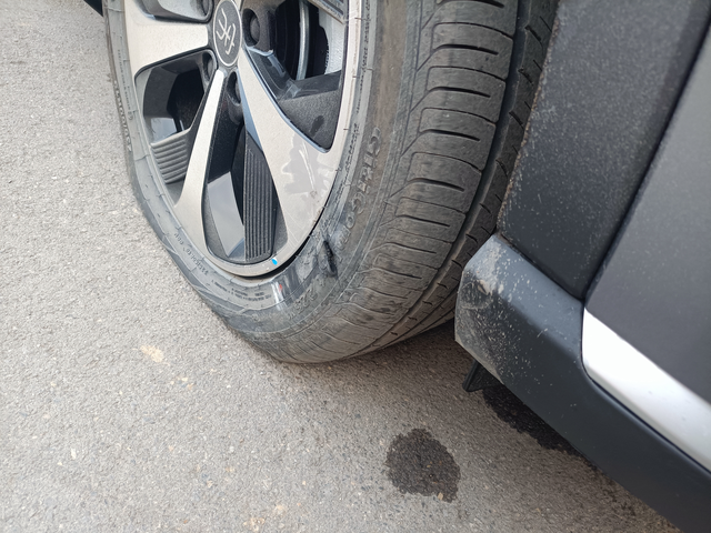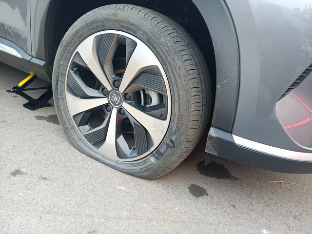 比亚迪宋PLUSdmi新车一血 上午提的车,找代驾开回家,下午自己开的蹭到马路牙子轮胎报废,难受死我了😭😭😭😭,不敢开了