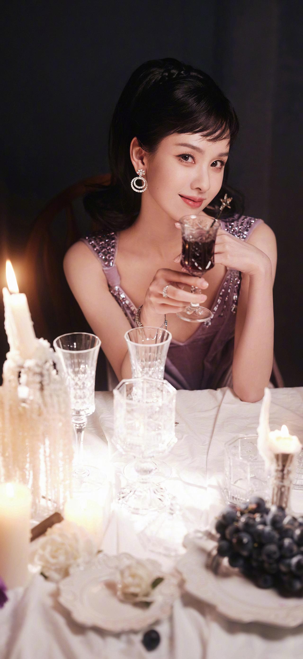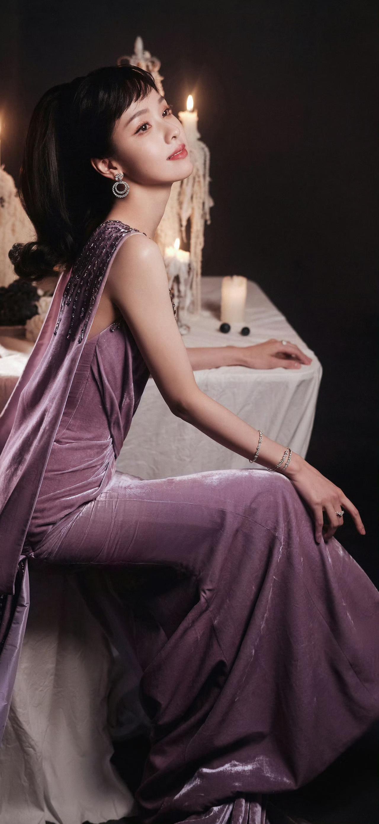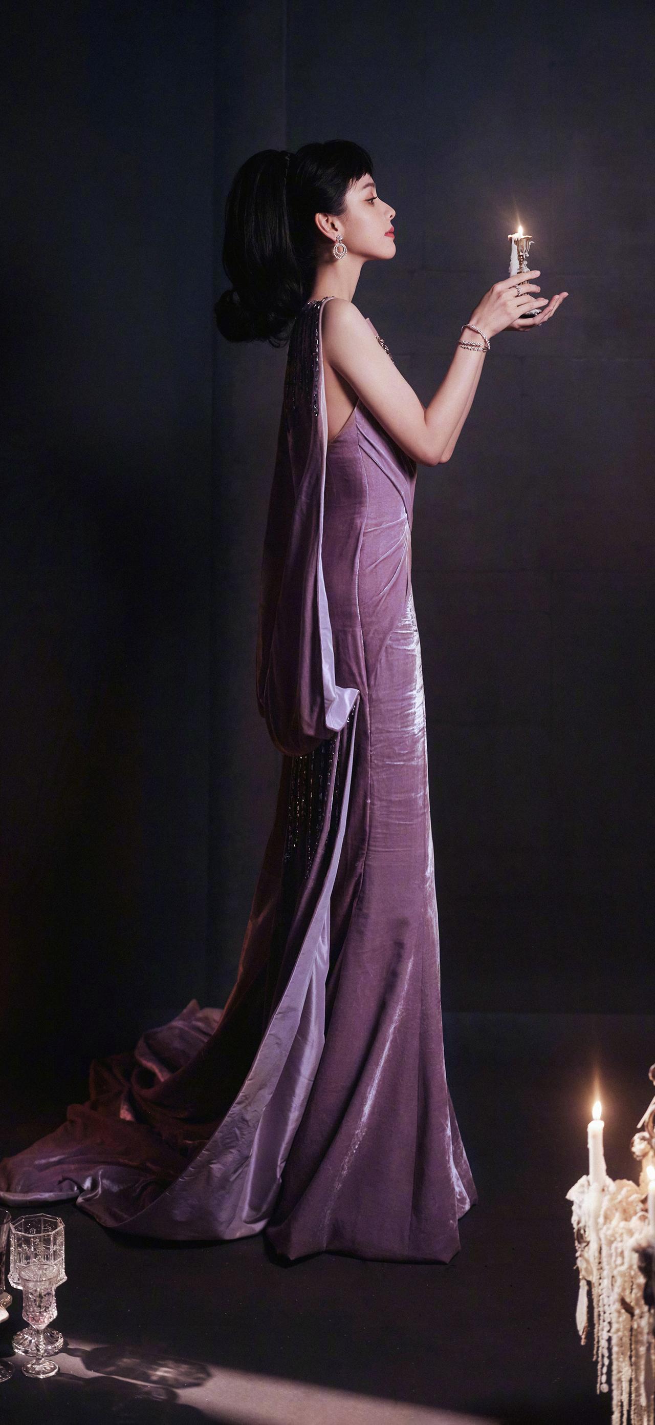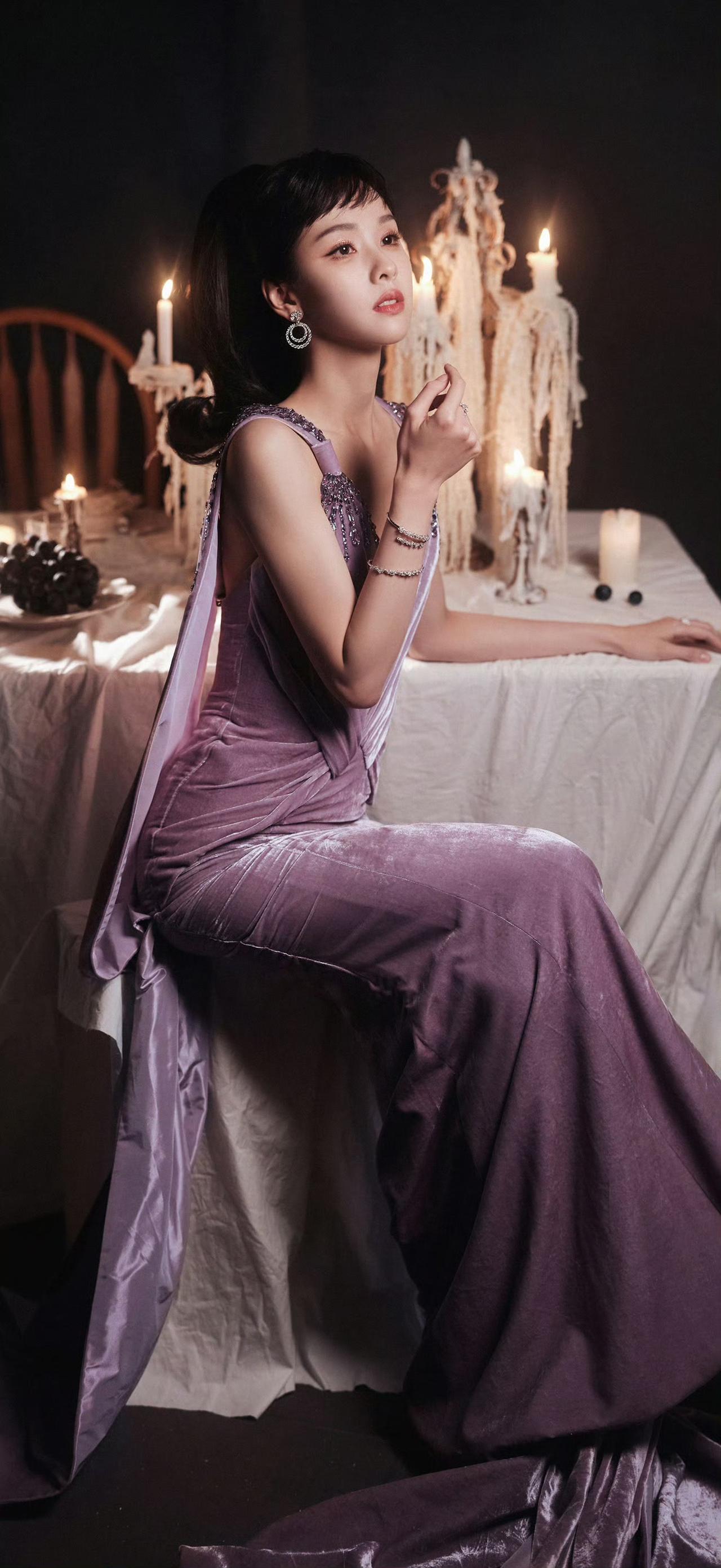 优雅紫色长裙,手持蜡烛,散发迷人光芒。陈都灵!!!