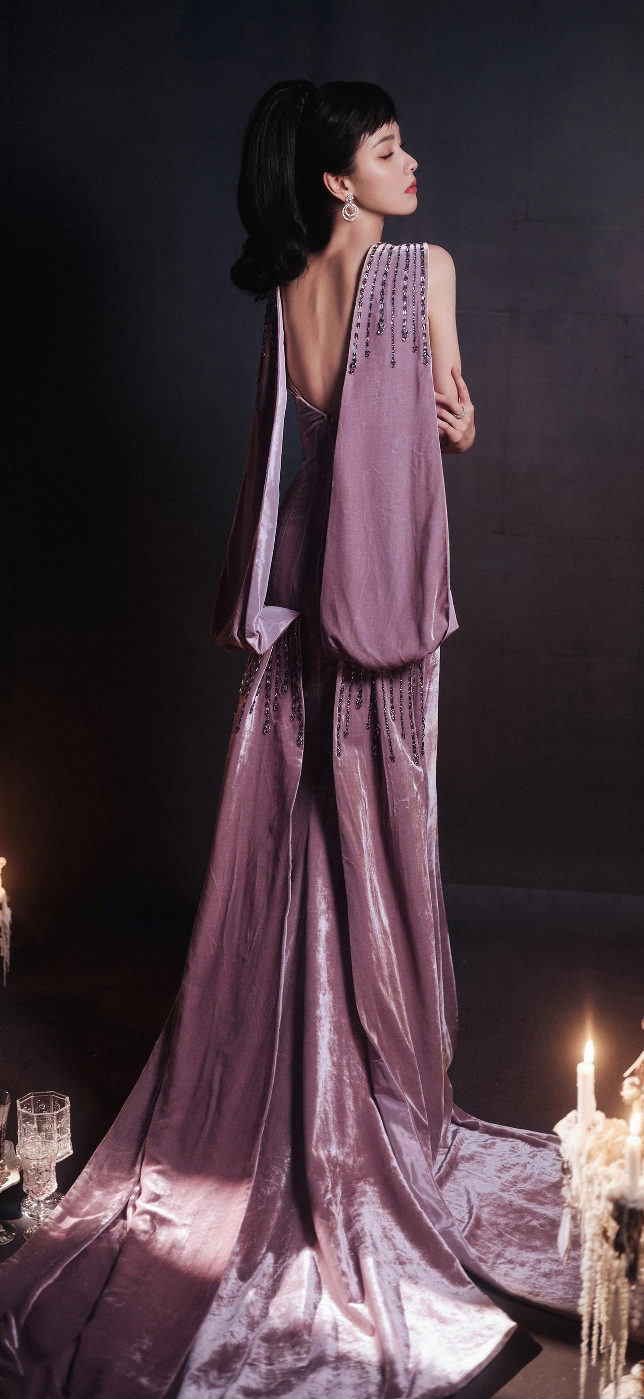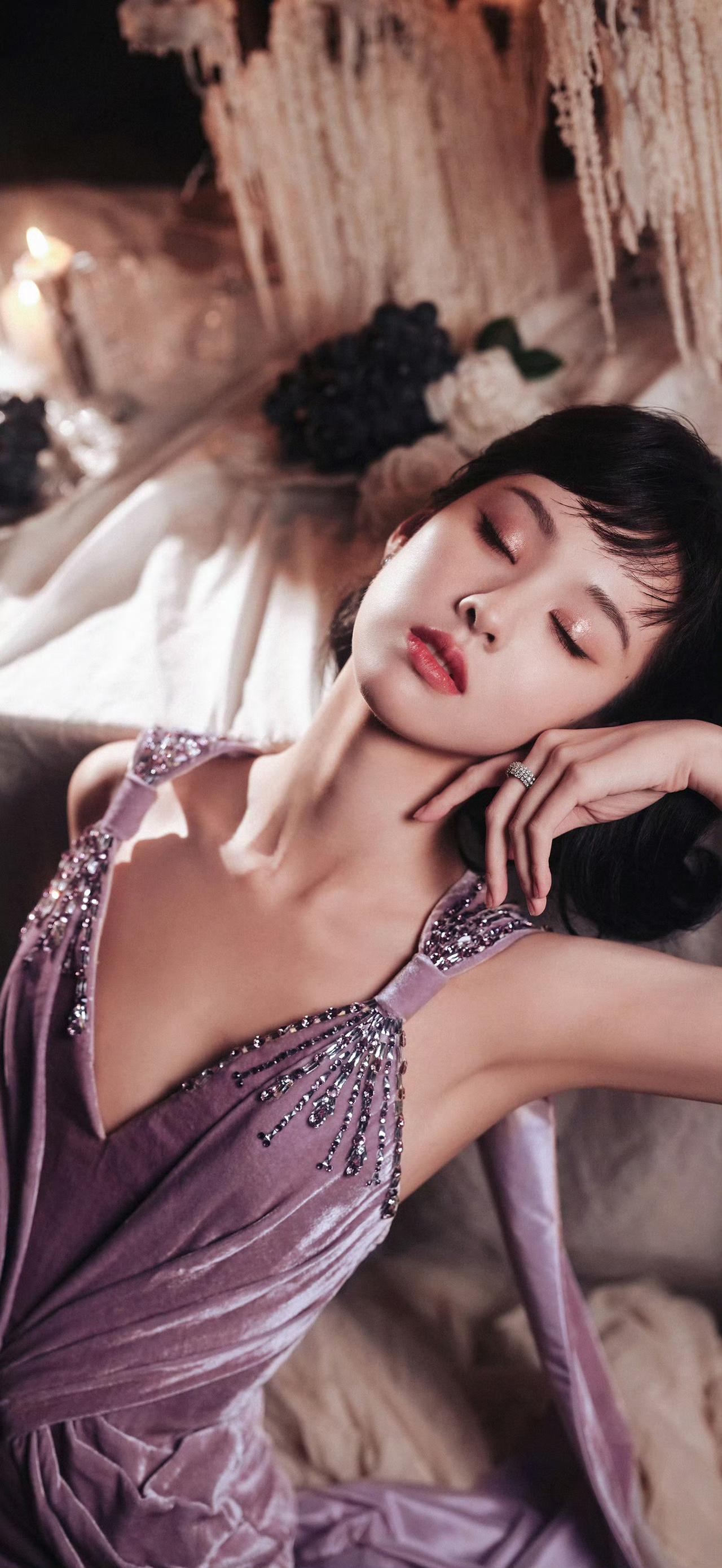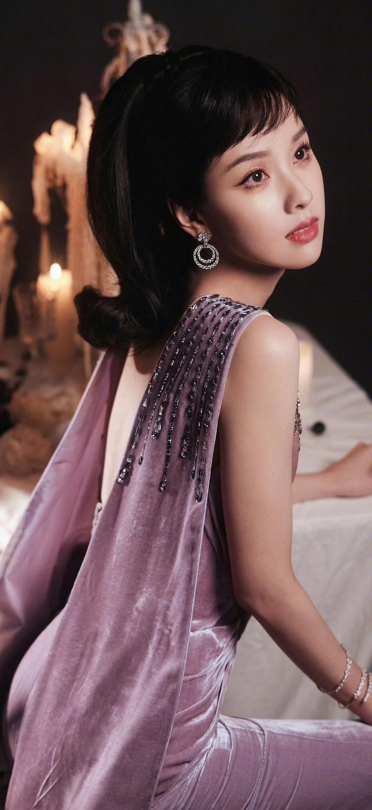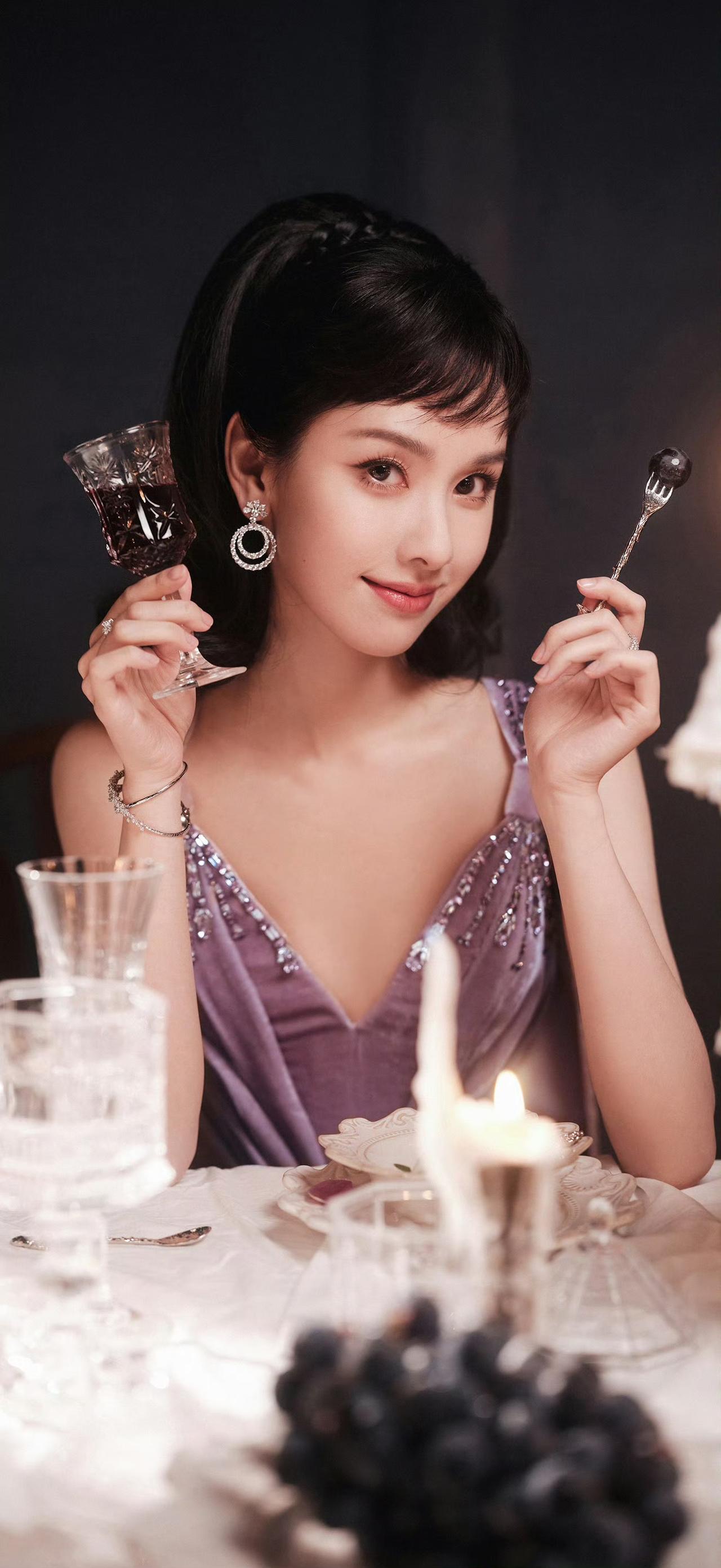 优雅紫色长裙,手持蜡烛,散发迷人光芒。陈都灵!!!