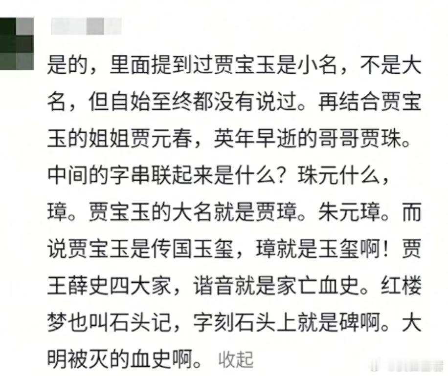 一定要警惕了!《红楼梦》暗含惊天密码?都看了吗?这两天《红楼梦》的新版解读,彻底在全网炸开了锅!在许多人眼里,它不过是一部描摹儿女情长、见证家族兴衰的古典小说,谁曾想,字里行间竟藏着老祖宗用热血与智慧留下的惊天密码!根据最新解读,这部传世经典的作者,大概率是大明遗民。在满清文字狱的腥风血雨中,他们不敢直言心声,便将 “反清复明” 的赤诚与密码,巧妙地藏进全书的肌理脉络,静待后世子孙读懂这段暗无天日的历史真相!这份跨越百年的隐忍与坚守,怎能不引发无数人的强烈共鸣?就比如四大家族 “贾王薛史”,细品之下竟是 “家亡血史” 的沉痛隐喻!再看贾政的三个孩子 —— 贾珠、贾元春、贾宝玉,连起来正是 “朱元璋” 三字;鲜有人知贾宝玉的大名叫贾樟,暗含“大明(名)没了” 的无声喟叹。那个口含通灵宝玉降生的贾宝玉,是大明国脉的象征,更是万千遗民的精神寄托;而林黛玉荷锄葬花的凄美场景,葬的哪里是凋零的花瓣,分明是覆灭的大明王朝,是一代人心中破碎的家国梦啊……说实话,看完这个新版解读,大嘴的汗毛孔都竖了起来,也让我们对《红楼梦》有了颠覆性的重新认知。如果这真的是作者留给后人的密码,我们难免心生惭愧 —— 时隔数百年才读懂老祖宗的良苦用心,让他们在历史的尘埃中,苦苦等待了这么久。但有一个令人欣慰的消息:这两天,明太祖朱元璋的 “斜八字脸” 形象终于被修正!要知道,明太祖本是威武霸气的一代英主,是开创大明盛世的铁血君王。看到这条消息的读者纷纷刷屏,感慨终于拨乱反正,还了先祖一个真实的面貌。想想真是匪夷所思,这样的误传竟延续了这么多年,误导了一代又一代人。关于大明王朝,还有多少被尘封的真相,是我们未曾窥见的?也正因如此,这两天网络上《红楼梦》的热潮再起,相关大明的电视剧也再度热播,人们在重温历史中,追寻着那份久违的民族气节。我们怎能不为先人的智慧而感慨、而感动、而热泪盈眶?在清朝文字狱盛行、动辄株连九族的黑暗年代,他们竟敢将不死的傲骨、不灭的家国情怀写入小说,更让《红楼梦》跻身四大名著,流传千古。这背后,是何等超凡的智慧与过人的胆识,是何等深沉的爱国之心啊!但有一个危险的现象,必须引起我们的高度警惕:就在国际局势风云变幻、暗流涌动的当下,《红楼梦》的新版解读突然爆出,在网上引发了激烈的探讨甚至争论。我们可以为大明共鸣,虽然大明也有封建婚姻的一面,但明朝完美延续了我国几千年的文化脉络,不仅诞生了《三国演义》《水浒传》《西游记》等家喻户晓的经典白话小说,就连这一次引发巨大争议的《红楼梦》,也被推测是明末清初的大明后人所著。我们可以深情怀念明朝的铮铮傲骨:从朱元璋提出 “不称臣、不纳贡、不和亲” 的铁血国策,到朱棣五征漠北、誓死维护边疆稳定;从明末军民坚守辽东、浴血抵御外敌,到于谦 “粉身碎骨全不怕,要留清白在人间” 的千古绝唱,无不彰显着民族的脊梁。明朝用两百七十多年的坚守,哪怕是崇祯皇帝最后吊死煤山的悲壮,也用生命诠释了 “天子守国门,君王死社稷” 的铁血气节,这份气节,早已融入中华民族的血脉。而大清的历史,确实带给了我们太多的屈辱与噩梦。所以,《红楼梦》中大明后人苦心暗藏的爱国密码,一经揭开便引发无数人的共鸣与唏嘘,也在情理之中。但是,请所有家人们谨记:如今的满族早已是中华民族大家庭的一员,我们五十六个民族,如同石榴籽一般紧紧相拥,血脉相连,生死与共。共同助力中华民族的伟大复兴,这或许正是当年《红楼梦》作者暗藏密码时,心中所期盼的盛世图景吧!要知道,如今的中国,早已不是百年前任人欺凌的弱国,我们已然强大起来!无论是日本还是美国,他们都清楚地知道,通过外部的正面碰撞,根本无法战胜我们。因此,谨防他们很可能会故技重施,试图用挑拨离间的手段,让我们内部撕裂、引发民族纠纷,从而破坏我们来之不易的团结局面。这一点,尤其值得每一个国人警惕,也不得不防,也绝不能让他们的阴谋得逞!老铁们,说是不是这个道理呢?