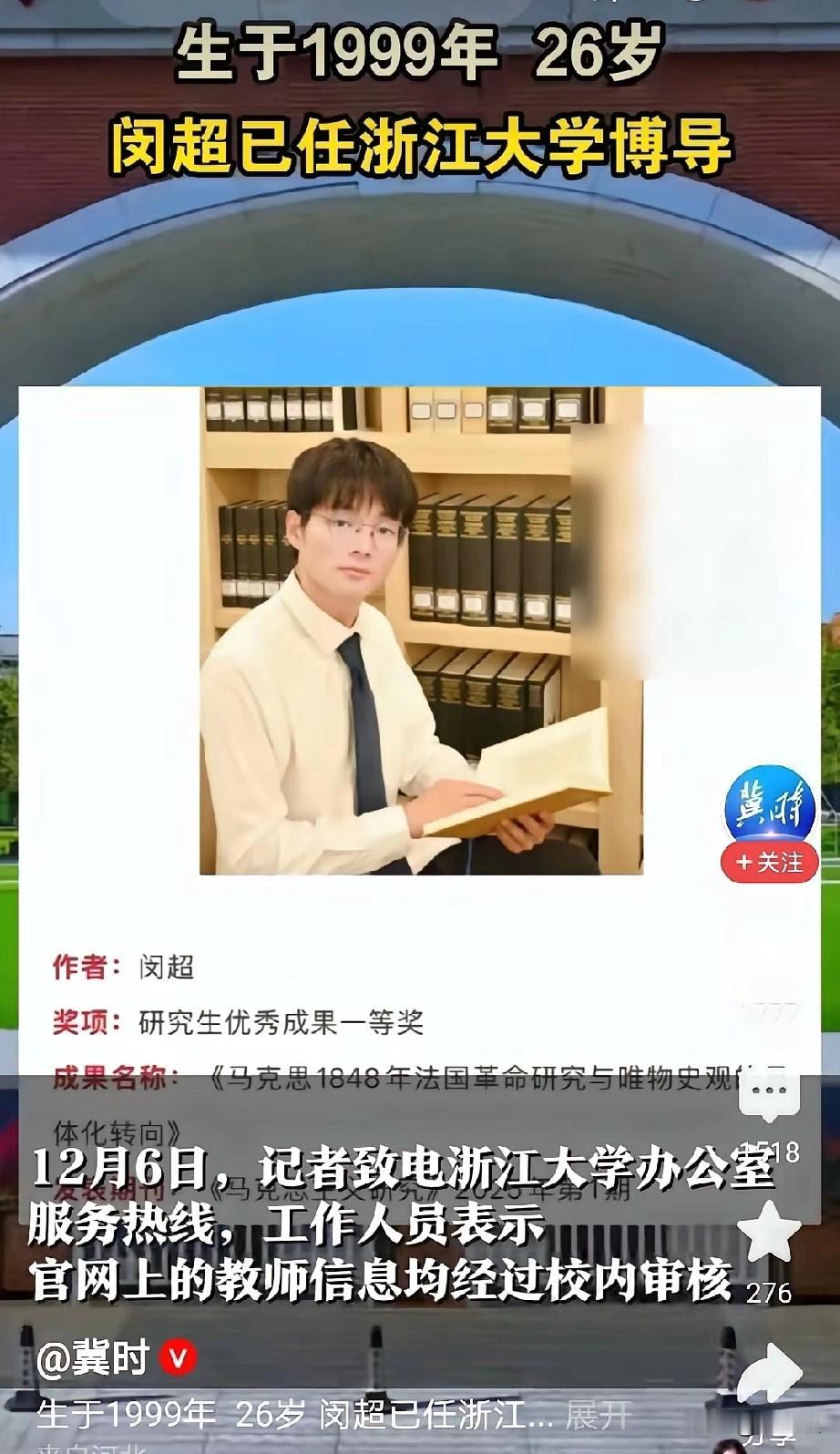 浙江大学新任博导闵超发表了哪些高质量改变社会的论文?有网友知道吗?毕竟刚刚博士毕业一步登天就成为浙江大学博导,必然有过人之处!就不知道他的改变命运的超级论文是哪些?毕竟看他的大学经历,很普通,上了研究生后人生就像开光一样,简直就是一飞冲天让人惊讶,就想了解一下他的大作,这样让别人也好学习一下,看能不能也发表这样高质量的论文,或者了解一下他的论文是怎么改变他所在专业的体系。哪里可以下载他的这篇大作呢?期待中
