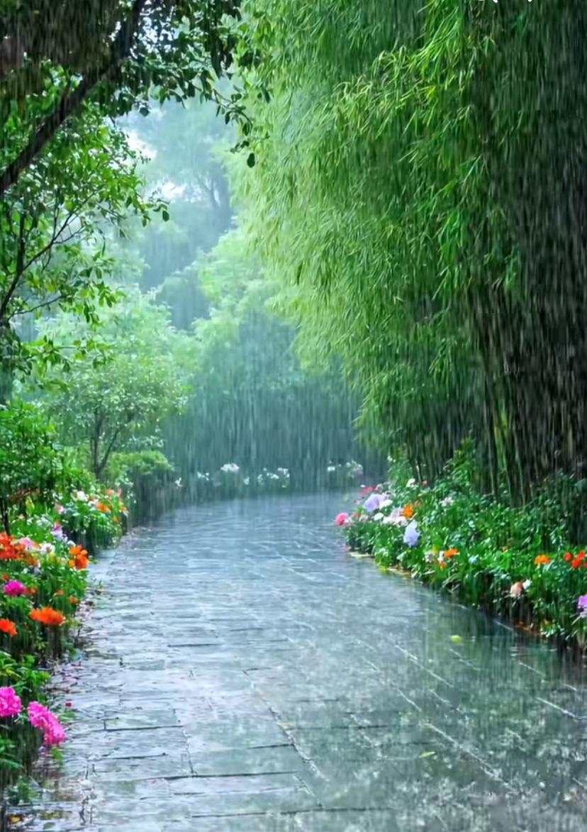 下联:雨来雨散雨无情;请对上联:花开花落花有意。