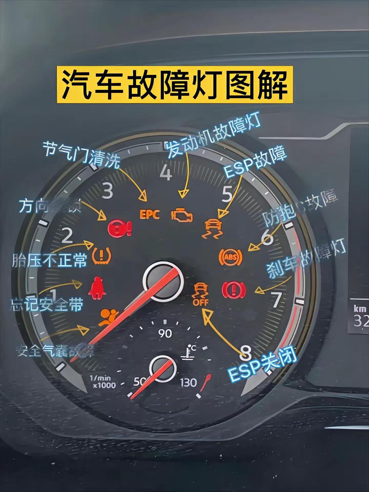 汽车知识 汽车小常识 仪表盘 故障灯 车辆常识