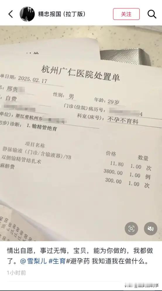 最近,一名男子在网上深情告白,配图是一张结扎的处置单,这可引起不少人的好奇,有网友顺着男子的账号找到了他女友,一番询问之下,男子结扎的原因以及更多离谱行为曝光,网友炸锅。 这起事件引发了广泛关注,主要涉及情感纠纷、极端行为以及网络舆论的发酵。以下是对事件的总结与分析: 事件背景: 雪梨(化名)32岁,浙江工作生活,曾是舞蹈老师。 邢贵(化名)30岁,曾是舞蹈老师,雪梨的前男友。 两人在2024年4月1日相识,发展为恋爱关系,但很快发现邢贵有多段恋情,导致雪梨提出分手。 分手后,两人关系复杂,涉及经济纠纷、骚扰、威胁等问题。 主要事件: 邢贵在2025年12月8日晒出结扎处置单,并发表深情告白,引起网友关注。 网友通过他的账号追踪到雪梨,揭示两人过去的复杂关系。 雪梨多次强调邢贵行为极端,包括跳楼、割腕等威胁,自己曾多次报警救人。 雪梨还披露邢贵的家庭问题,包括对她的骚扰和对待婚事的态度。 邢贵为了表达爱意,采取极端手段,包括纹身、结扎,甚至用死相逼。 网友对邢贵的行为表示谴责,纷纷劝雪梨远离这段关系。 事件影响: 雪梨精神状态受影响,诊断为情感障碍和睡眠障碍。 网络上对邢贵的负面评价不断升温,有人怀疑他的钱财动机,有人担心雪梨的安全。 邢贵通过视频回应,但引发网友群嘲。 雪梨的账号可能被平台限制,事件暂告一段落。 分析: 这起事件反映了情感纠纷中极端行为的危害,也揭示了网络舆论对个人隐私和安全的影响。邢贵的行为从情感控制、经济操控到威胁自伤,表现出严重的心理问题和不健康的情感依赖。雪梨作为受害者,面对多重压力,采取了保护自己和报警的方式,但仍然受到伤害。 建议: 受害者应及时寻求专业心理帮助,保护自身安全。 社交平台应加强对极端行为和骚扰的监管,保护用户权益。 社会应关注心理健康,预防类似极端事件发生。 公众在面对类似事件时,应理性看待,避免传播不实信息或恶意评论。 未来展望: 事件是否会持续发酵或得到解决,尚未可知,但希望雪梨能早日走出阴影,恢复正常生活。 也希望社会关注心理健康和家庭暴力、骚扰等问题,防止类似悲剧重演。 如果你需要更详细的分析或有其他问题,欢迎随时提出。
