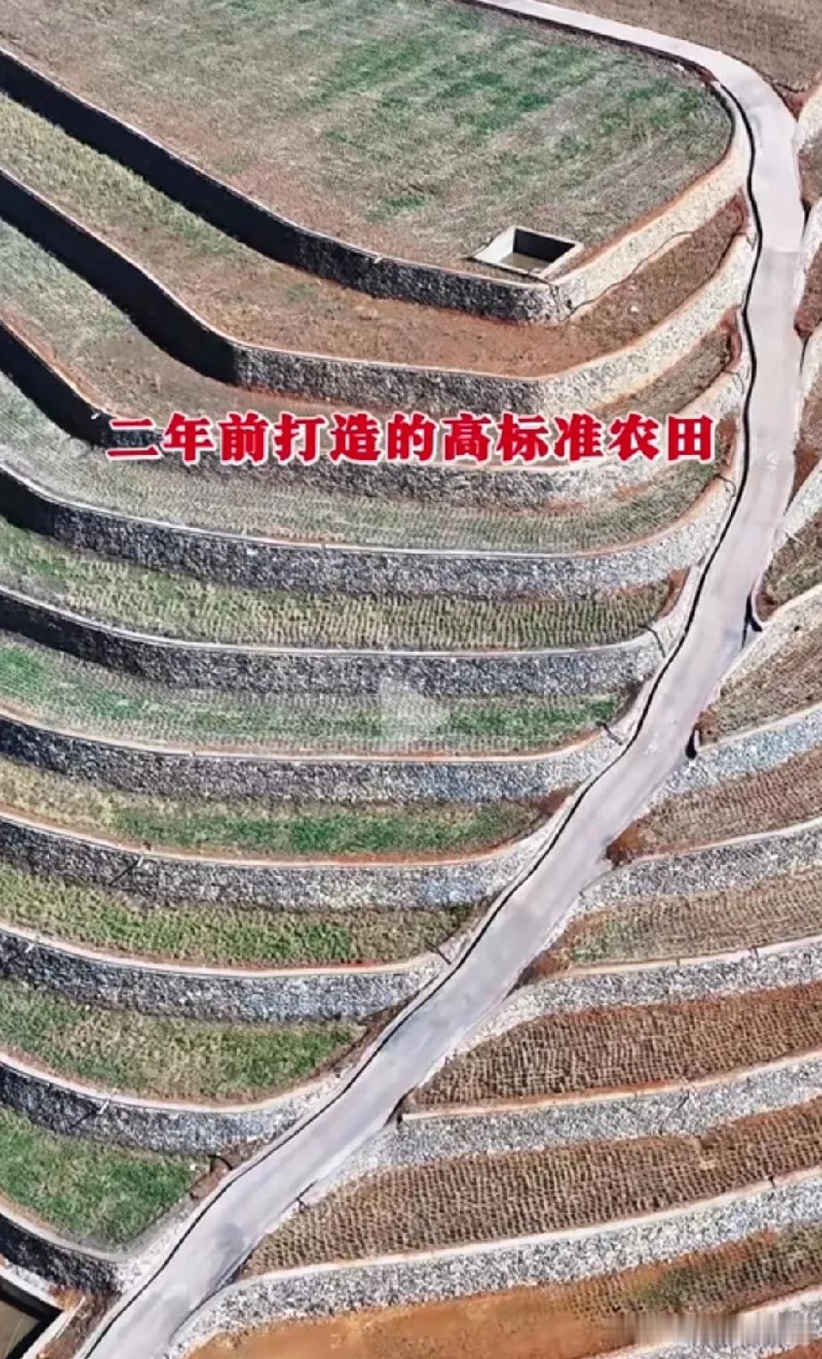 看到这一幕,我就问你这梯田漂亮不漂亮吧?有人说好,增加了可耕地。这工程干的漂亮,梯田风景 金金灿灿的梯田