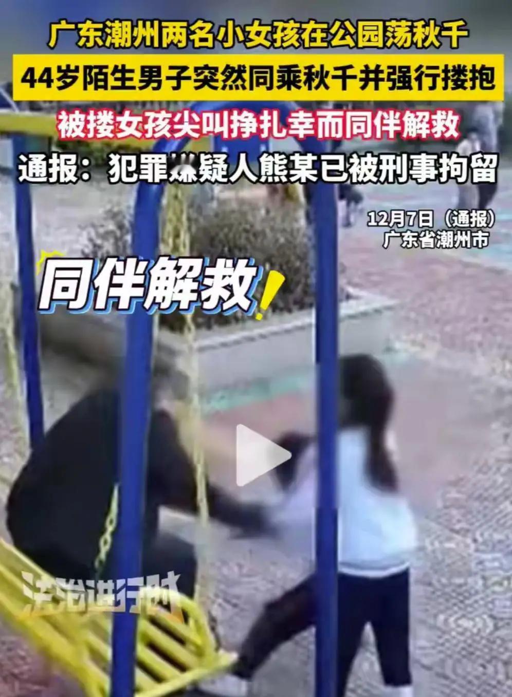 男子在公园猥亵女童后续!更多细节曝光,女童不是男子首选对象。 这起事件发生在广东潮州市潮安区彩塘镇的公园,令人震惊且令人心痛。根据监控录像和官方通报,44岁的男子熊某在2025年12月5日傍晚,趁没有大人看守的情况下,盯上了两个正在玩耍的小女孩,最终在秋千区对其中一名女孩实施了猥亵行为。幸好,被一名勇敢的小伙伴及时制止,现场路人迅速反应,将嫌疑人控制并报警,案件随后由公安机关处理。 事件细节如下: 时间:2025年12月5日傍晚6点左右 地点:潮州市潮安区彩塘镇某公园 行为过程:熊某在公园内观察目标,挑选未被大人看护的孩子,趁机行凶 被害女孩:有明显抓痕,事后心理受到严重影响 现场反应:一名小女孩勇敢反抗,另一名女孩迅速逃跑,路人及时制止并报警 处理结果:嫌疑人熊某被公安机关刑事拘留,案件正在调查中 官方回应:镇政府已对受害女孩进行心理疏导 公众对此事件表达了强烈愤慨和同情,尤其对受害女孩的勇敢反抗表示赞赏。这起事件也提醒家长和社会加强对儿童的安全教育,增强自我保护意识。专家指出,面对陌生人的不当接触,孩子应学习大声呼救、拼命挣脱的自救方法,同时,家长应密切关注孩子的日常安全,避免类似悲剧再次发生。 此案再次敲响了儿童安全的警钟,也呼吁社会共同努力,为儿童营造一个更安全、更有保护的环境。