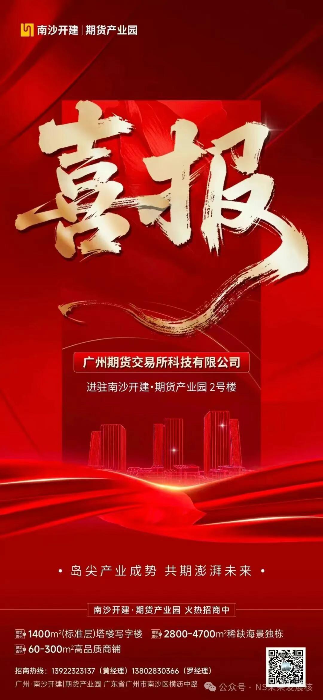 【横沥国际金融岛再下一城!】广州南沙期货产业园官方发布“喜报”!位于灵山岛的广州期货交易所科技有限公司正式进驻南沙开建·期货产业园 2号楼。根据先前的介绍,广期所整栋预留2号楼,除了广州期货交易所科技有限公司之外,未来或许可以等来其他更多的广期所相关公司入驻。