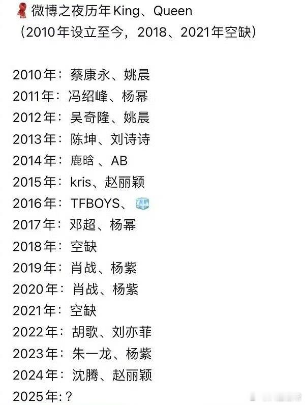 2025年微博之夜要来了,谁会是2025年的微博KING&QUEEN?历年三封