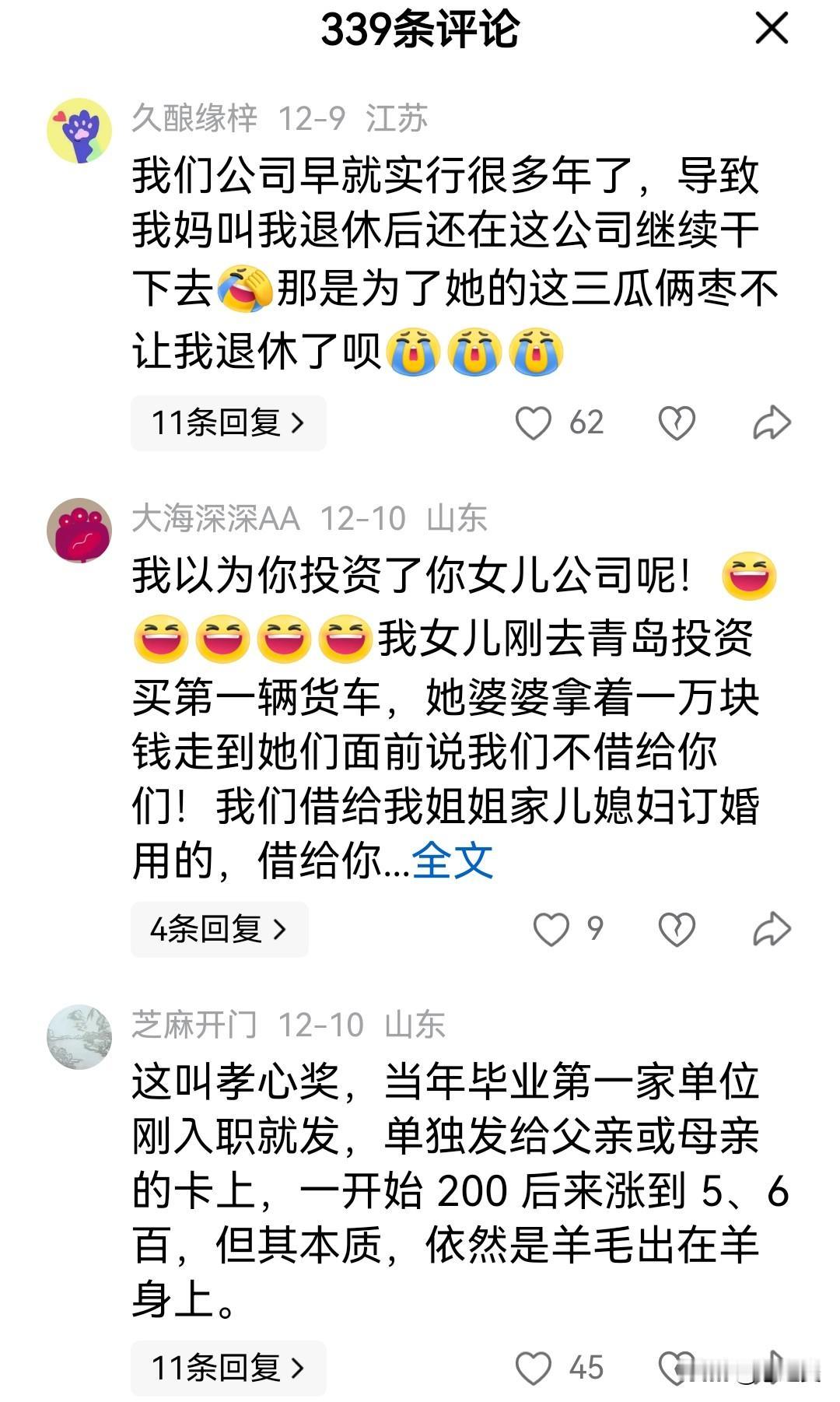 如果你所在的公司每个月给你的父母发养老金,你打算在这家公司干多久?