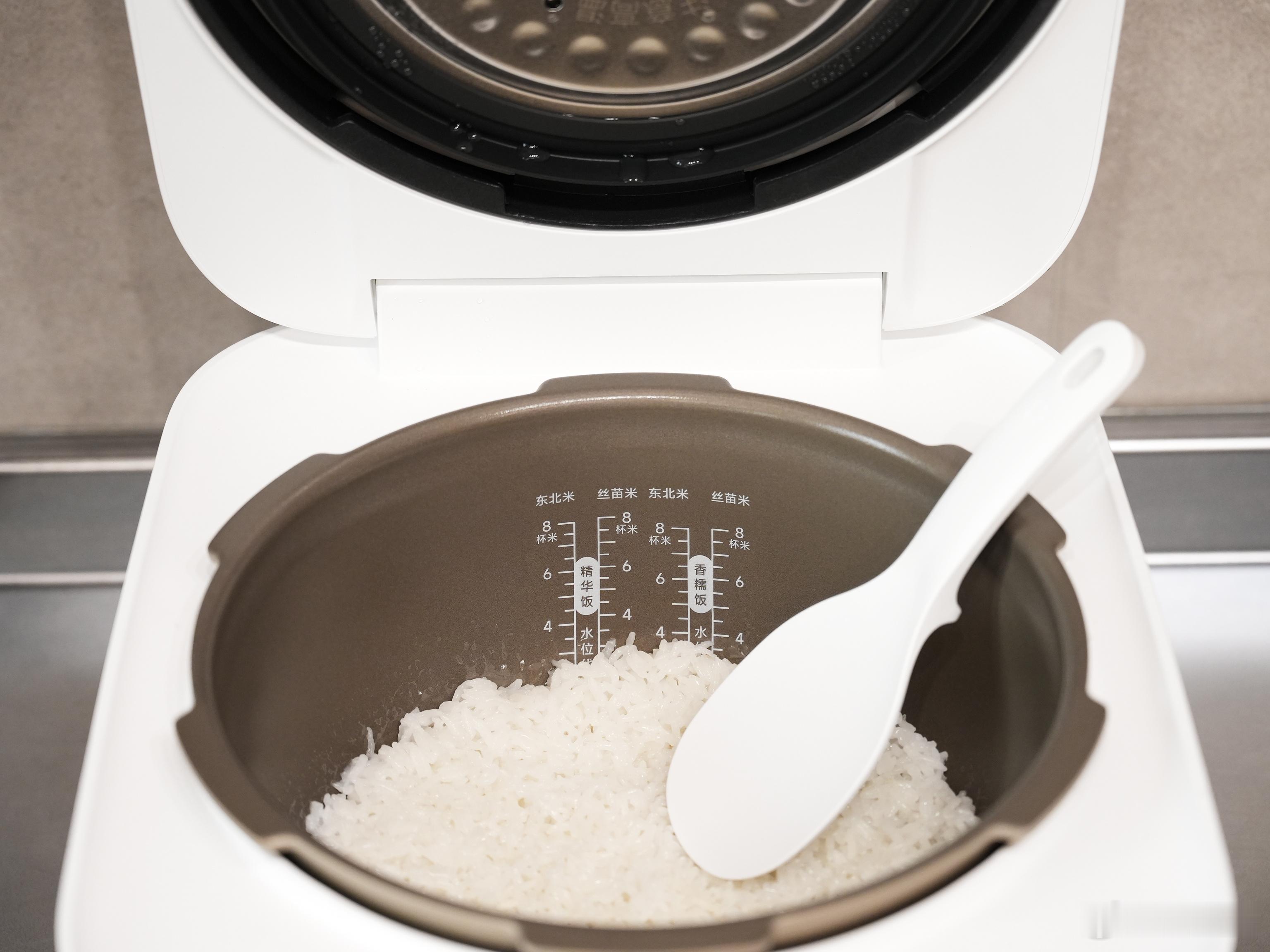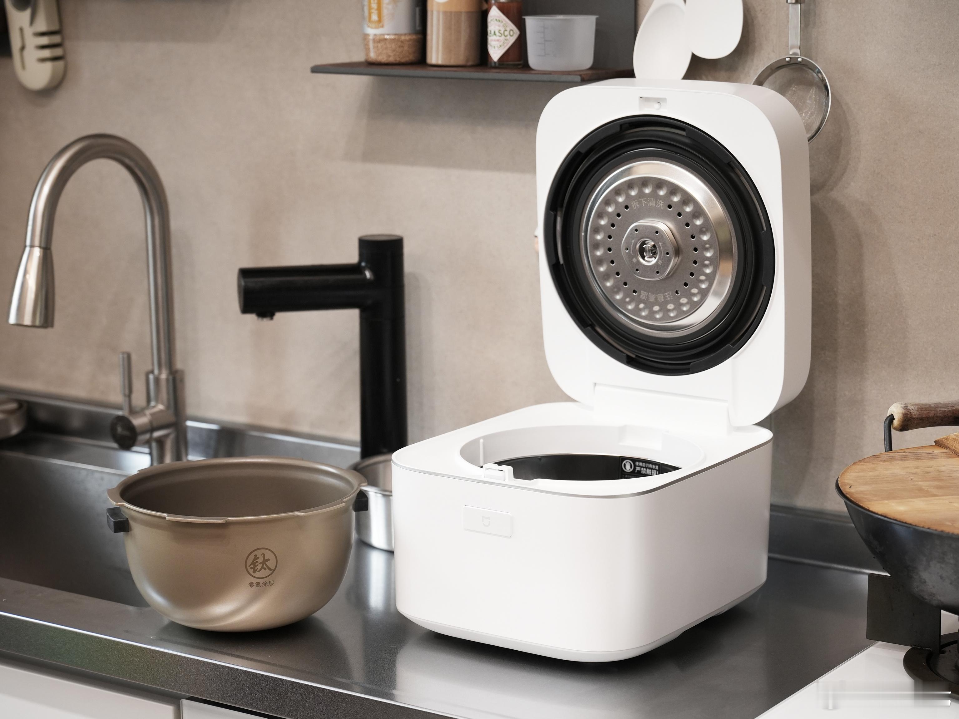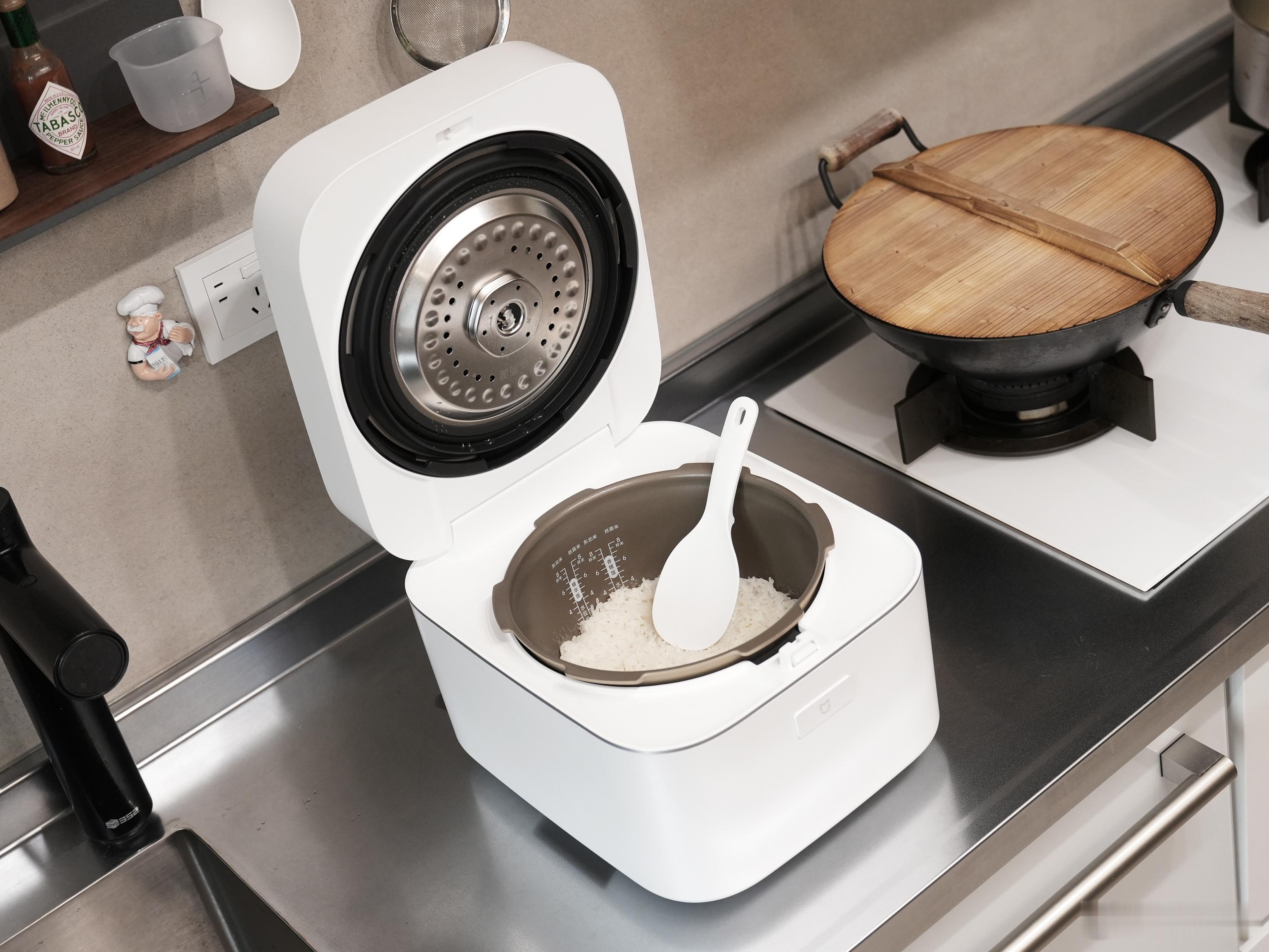 米家智能变压IH电饭煲 4L白色款上新!相比黑色,白色明显更符合米家小家电的整体风格,简约大气挺好看的米家变压IH电饭煲依旧给大家简单介绍下卖点,最好用的就是14分钟极速饭了。晚上下班到家淘米煮饭,十几分钟就能让你吃上热乎饭,不用提前预约不用提前准备,十分迅速。我也实测过米家智能变压IH电饭煲 4L的煮饭时间,13分22秒煮完,17分50秒排气完毕,真的更快了,你们可以在我的主页搜索关键词查看那还有一个我十分喜欢的功能就是,它可以自定义米饭的口感。自由选择粘度和硬度,共9种组合。像我就喜欢硬一些不太粘的饭,万一有客人来了或者长辈在家吃饭,可以根据他们的口味选择合适的硬度,满足不同人的需求,挺好用的内胆采用的是3mm纯钛材料,0氟涂层。一台电饭煲煮饭好用,材质健康,还要有什么要求呢?小米IH电饭煲