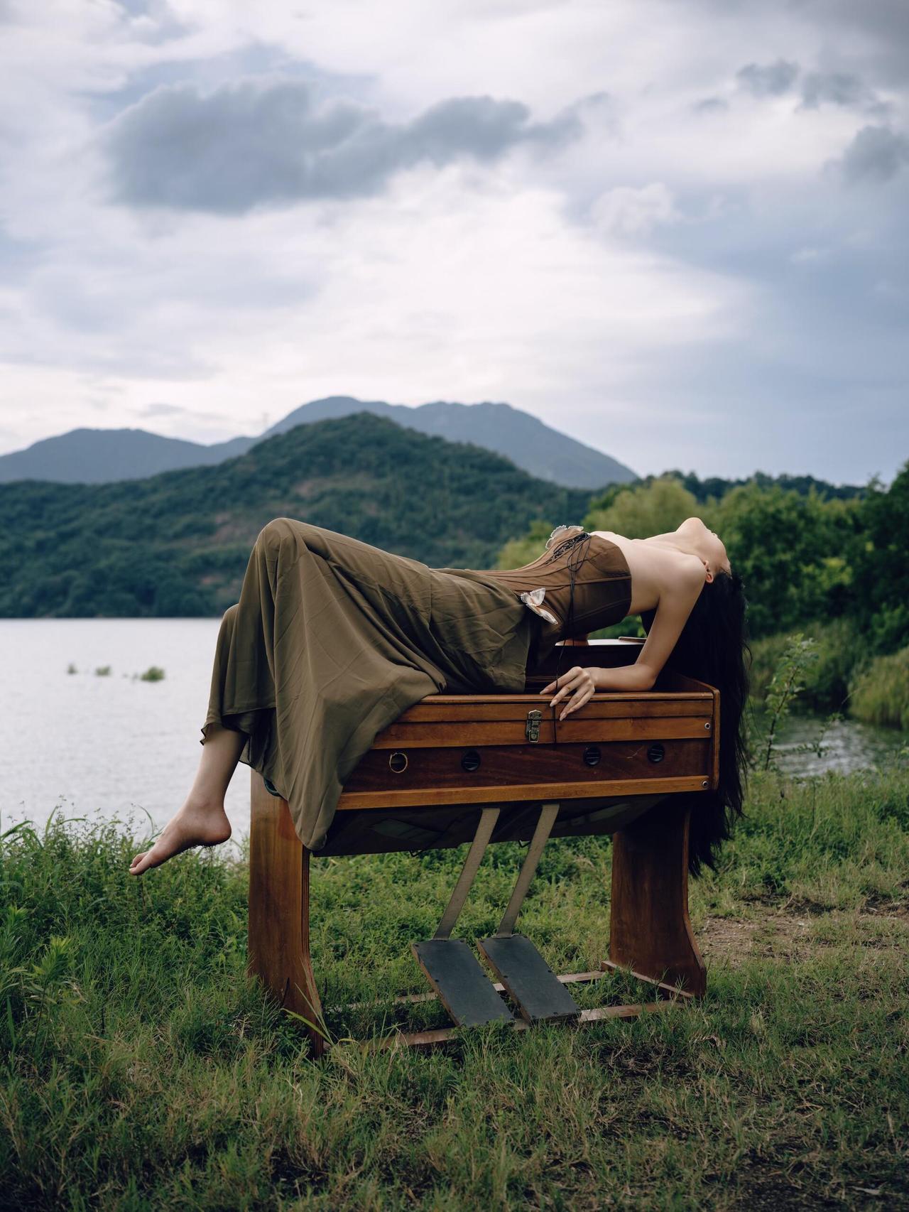 【人像摄影:浮沉】 湖风裹着远山的雾,漫过裙角时,她正把呼吸寄在云里。 木质琴箱承着身体的轻,像托住半程未竟的梦。皮肤贴着水汽,发梢缠过风的纹路,连唇瓣都浸着天地的潮润。 是沉溺,也是浮升:在山水的轻吟里,肉身是轻舟,灵魂正离岸。 摄影思路分享: ①景别层次:远景铺山水雾感,中景用琴箱做支点(弱化道具感),特写怼唇鼻肌理,用虚实拉情绪; ②光线巧思:阴云漫射光+侧逆光勾发丝,后期压暗背景留面部高光; ③动作逻辑:身体舒展但关节微曲(松弛不僵),赤脚贴草地接“地气”。 手机修图参数分享: - 滤镜:暗调+60,叠加冷白+25 - 光感:-15,对比度:+8 - 阴影:+20(柔化暗部) - 颗粒:+12(增加胶片质感) - HSL:肤色-红+5,背景绿-饱和-10 一键套用这组参数,阴天外景也能拍出松弛的情绪感!