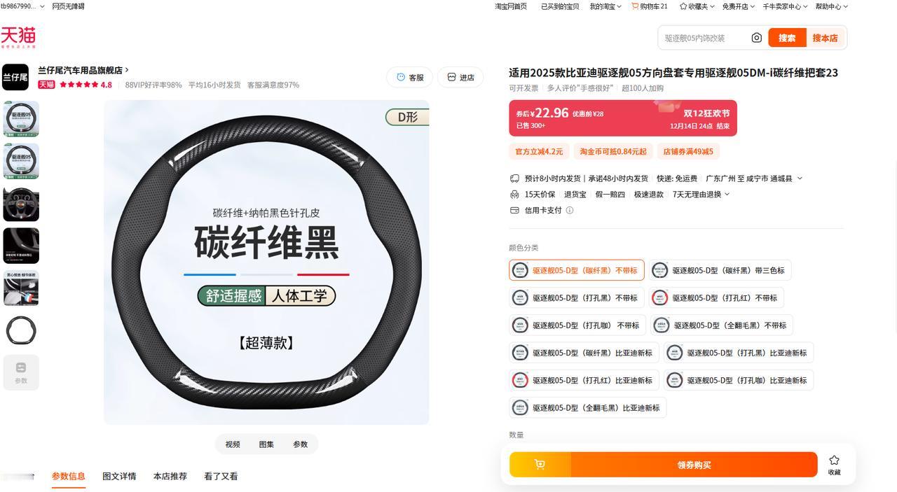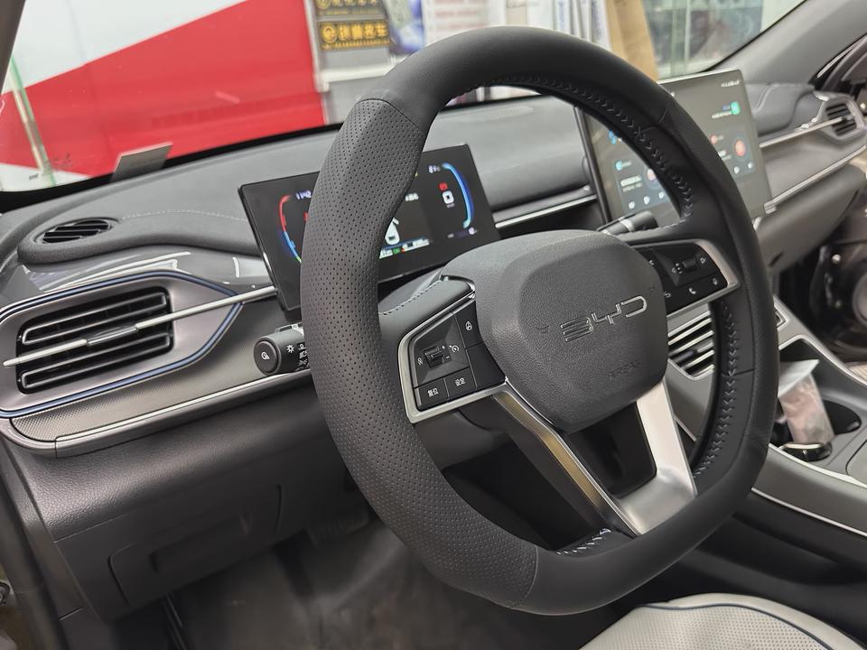 心血来潮给方向盘加了个套,摸上去软软地,手感也好很多。但家里人看到后,都说颜色不协调,丑爆了。让万能的网友评价一下吧,有没有和我一样的比亚迪车主?感觉应该买个碳纤维的,那个亮面应该会更显高级一点!