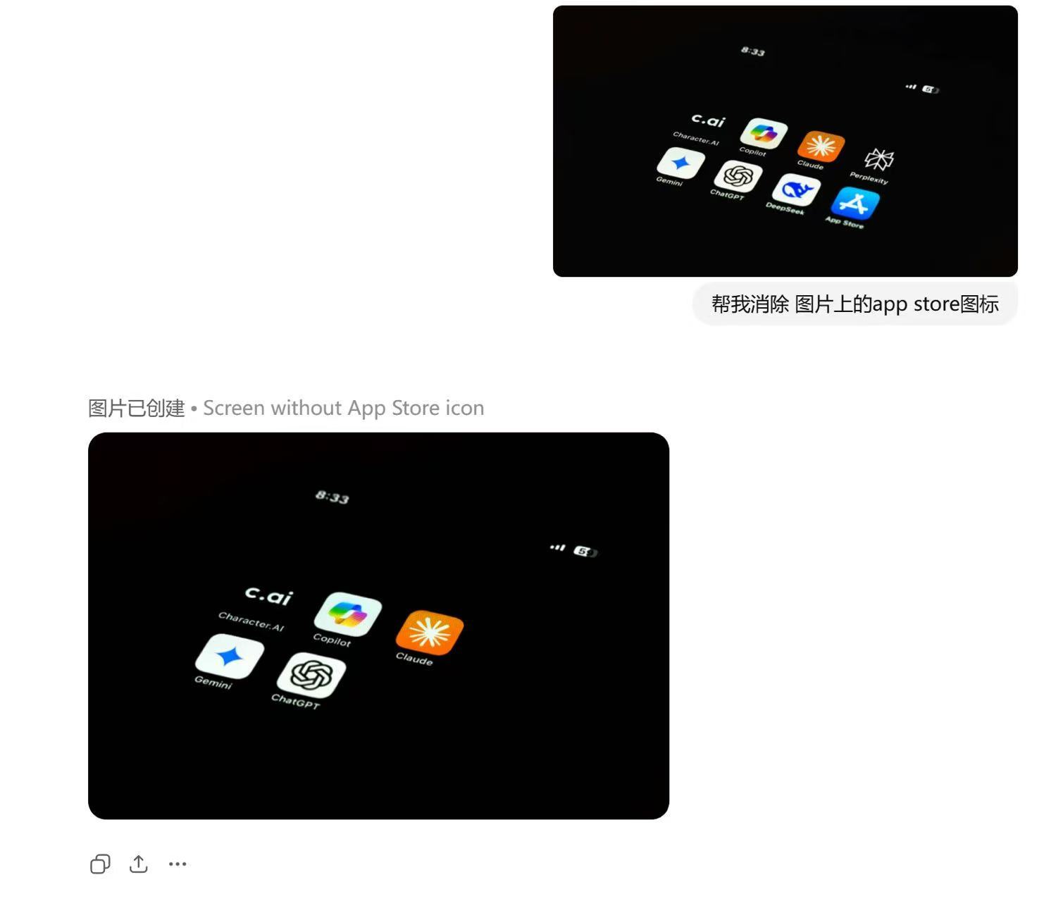 ChatGPT 悄悄上了一个提升效率的更新:可以直接在聊天框里调用部分 Photoshop 功能了。像调亮度、对比度、饱和度、套滤镜、简单修图、选定区域做模糊或抠背景,都可以不用跳软件,边聊边处理。上传了一张图片简单测试了一下,让ChatGPT帮我p掉画面上的一个图标,得到的效果还是不错的。(像这种轻量的编辑GPT还是能做到的,专业复杂处理还是要跑到 Photoshop 里继续)除此之外,Adobe Express 和 Acrobat 也一起接入了。做海报、请柬、加动画、改视觉、把文件转成 PDF,全都能在ChatGPT 里完成,等于把半套 Adobe 套件塞进了 AI 里。目前网页端和 iOS 已经上线,Android 先支持了 Express,其它功能应该也快了。虽然暂时还不支持生成式填充,但对大多数轻量编辑已经非常够用。