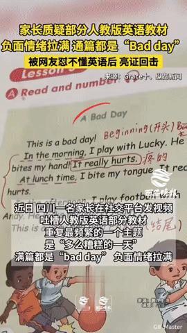 教材满是“Bad day”,家长亮英专证书回击:孩子学英语,何必总“糟糕”? “孩子的英语教材里,不是手被狗咬,就是腿被踢,通篇‘糟糕的一天’,这学英语的心情能好吗?”四川一位家长吐槽人教版英语教材的视频,瞬间引发热议。 这位家长发现教材中多处围绕“Bad day”展开,负面情节密集。当被网友质疑“不懂英语”时,她亮出英专硕士、专八证书等硬核资质回击。 不少人随之思考:英语教材在教授语言的同时,是否也该多传递些积极的生活态度?毕竟,谁不想让孩子在学英语时,也能看到“美好的一天”呢?