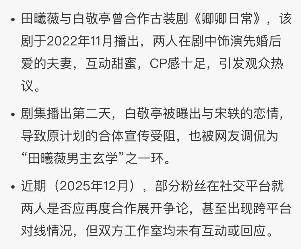 没搞懂白敬亭和田曦薇粉丝在吵啥,网友希望两个人二搭,不搭就不搭呗,吵啥呢没有白敬亭就没有卿卿日常网友希望白敬亭田曦薇二搭田曦薇白敬亭粉丝