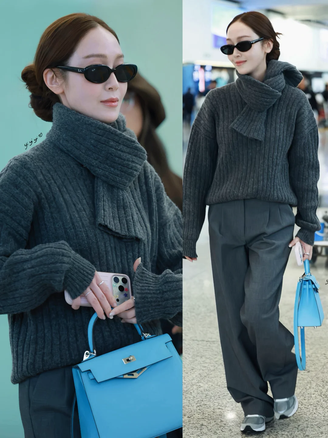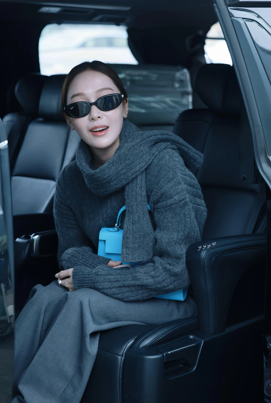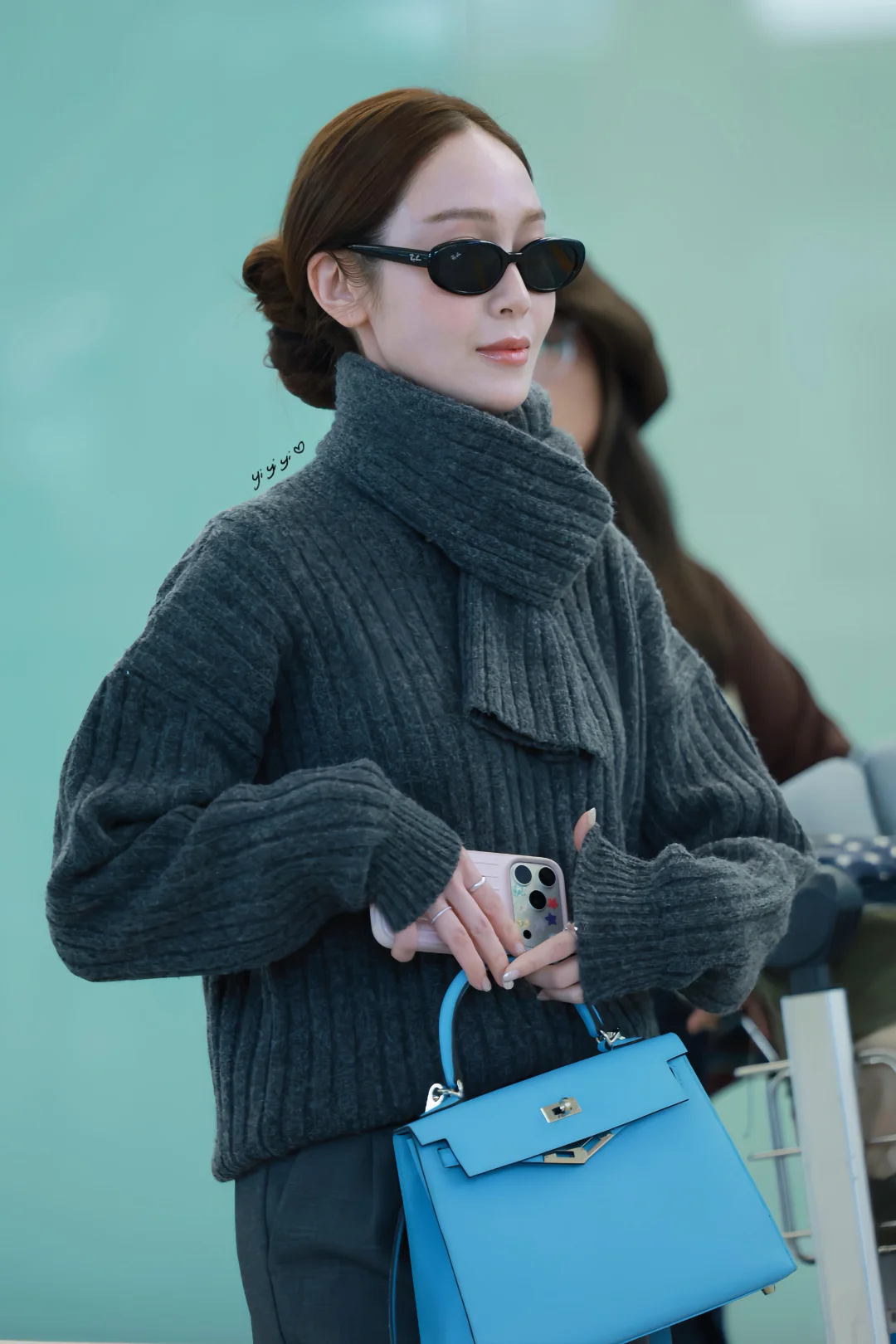 Jessica郑秀妍机场,老钱风穿搭很高级