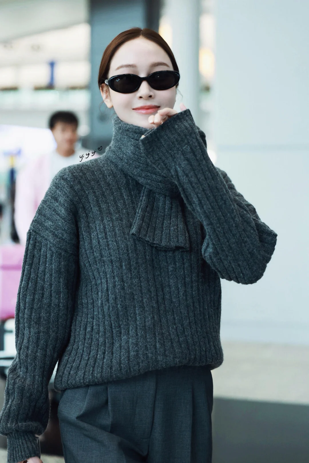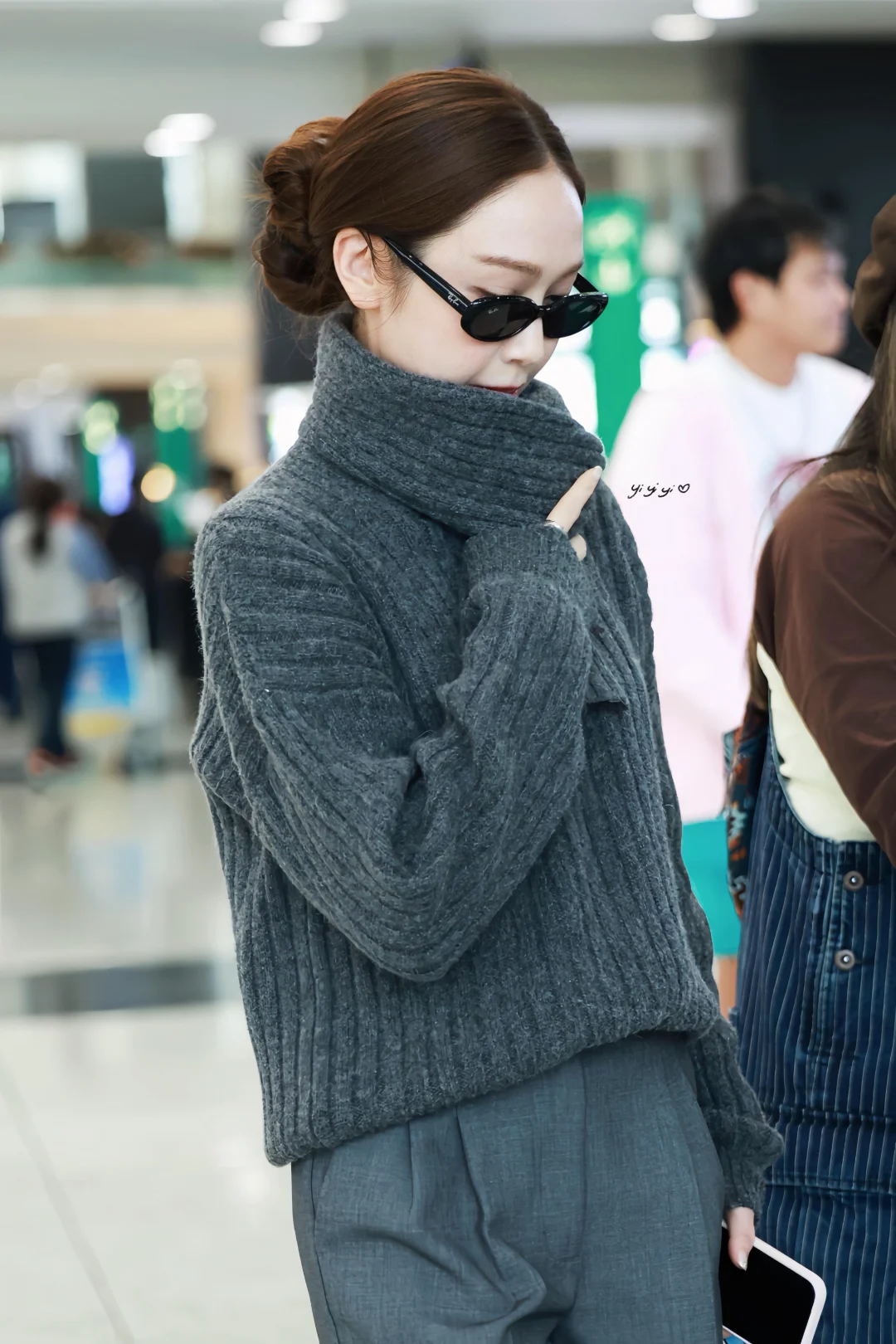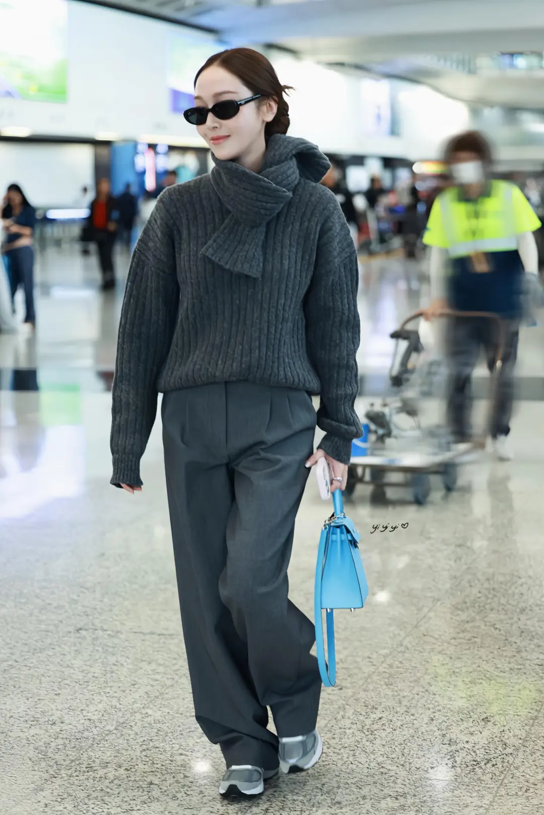 Jessica郑秀妍机场,老钱风穿搭很高级