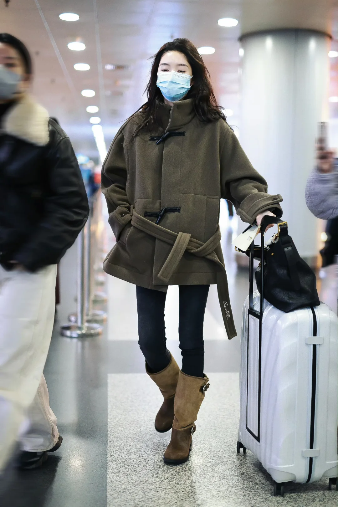 Jessica郑秀妍机场,老钱风穿搭很高级