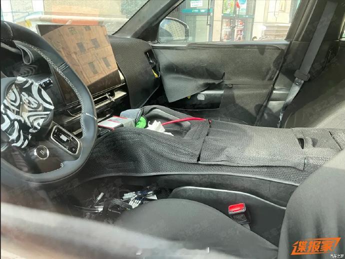 极氪8X的谍照,外观看着与极氪9X没多大区别,但内饰风格大变!中央扶手前方类似Cayenne的扶手设计;三排六座的布局,二排还是独立的两个座椅;另外,AI数字底盘,空气悬架都有新能源汽车极氪8x