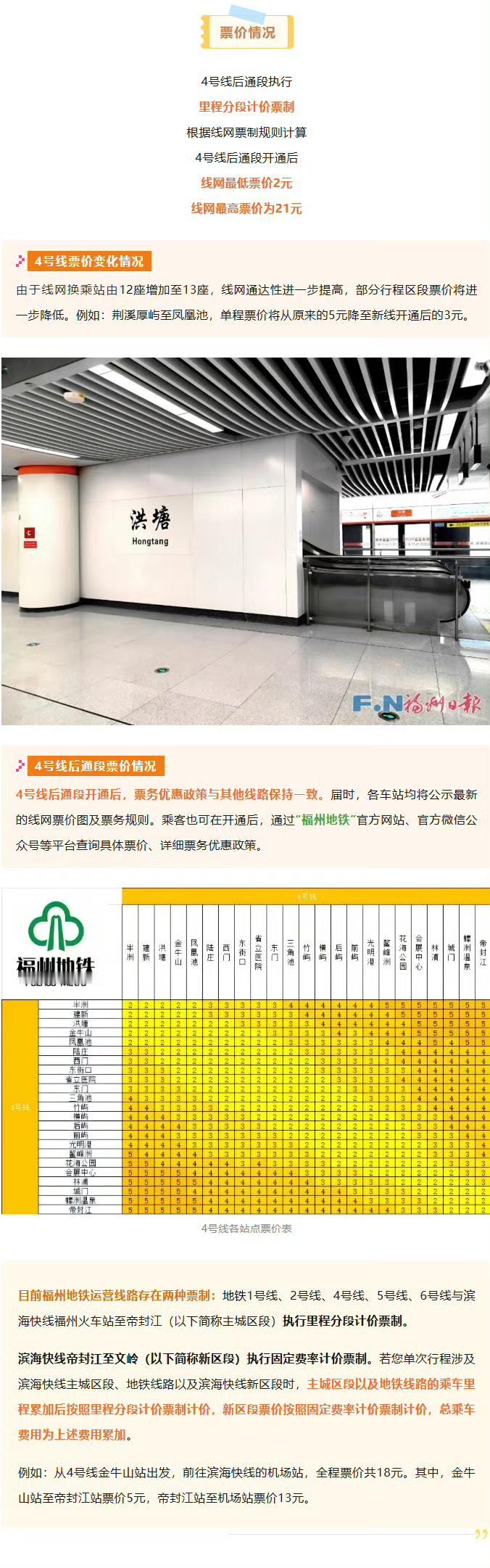 【福州地铁4号线后通段来了!】 好消息!福州地铁4号线后通段已开通运营,首末班车、行车间隔、线网票价变化、各站点出入口信息,您关心的核心信息都在这!Via:@福州地铁 虎纠人讲福州