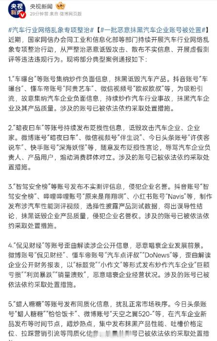 又有一批汽车领域账号被处理,看看有没有你熟悉的,新能源汽车行业是国家大战略,不可抹黑