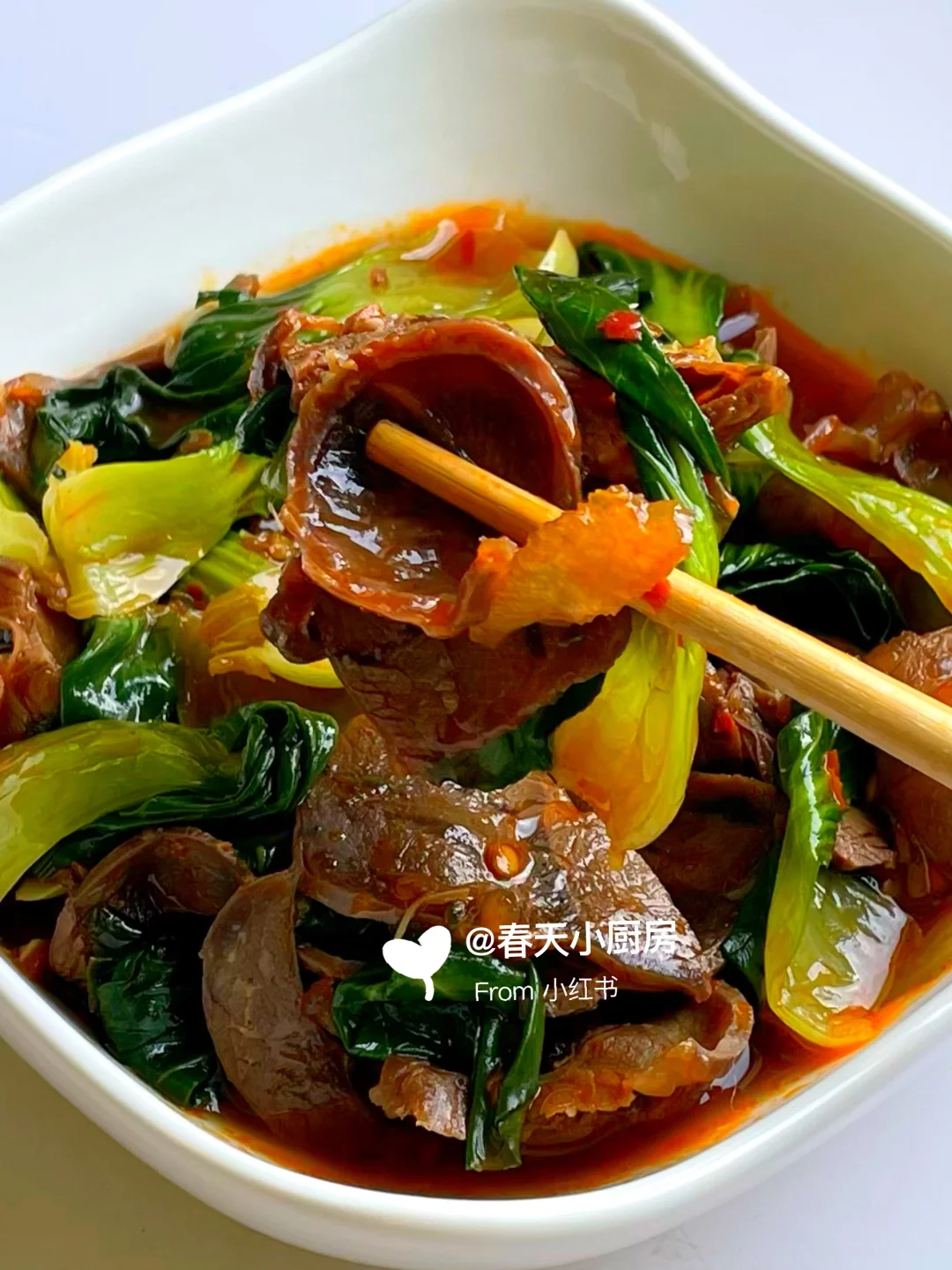 做菜我是认真的 🌈🌈 作为盐城人从小吃到大的家常菜,青菜烧牛肉大苏北人民的看家拿手好菜,也是盐城传统八大碗之一!选用水牛肉,加上本地青菜,再配上豆瓣酱的醇厚香辣,一口下去,暖到胃里,不用追求名贵食材,家常的搭配,简单的做法,就能做出盐城人百吃不厌的一道菜。