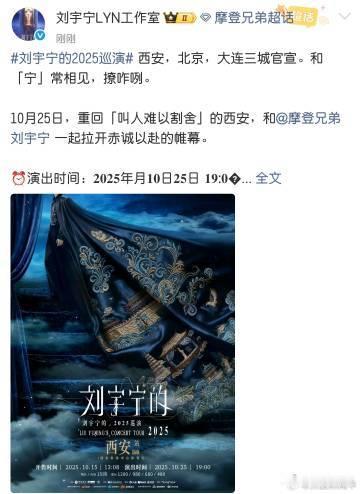 刘宇宁巡演官宣 6 年轮回!从北京再出发,咱鹰系粉丝必须支棱起来,一起卷手速,全员沾好运,务必都能抢到票!