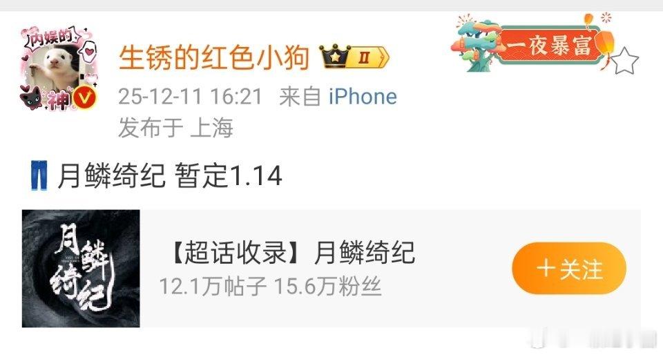 哇塞,👖月鳞绮纪有具体时间了,暂定1.14