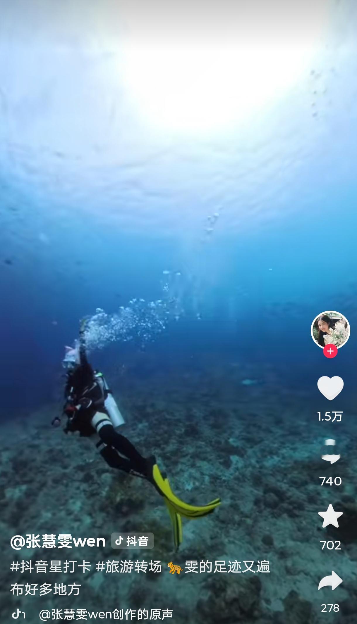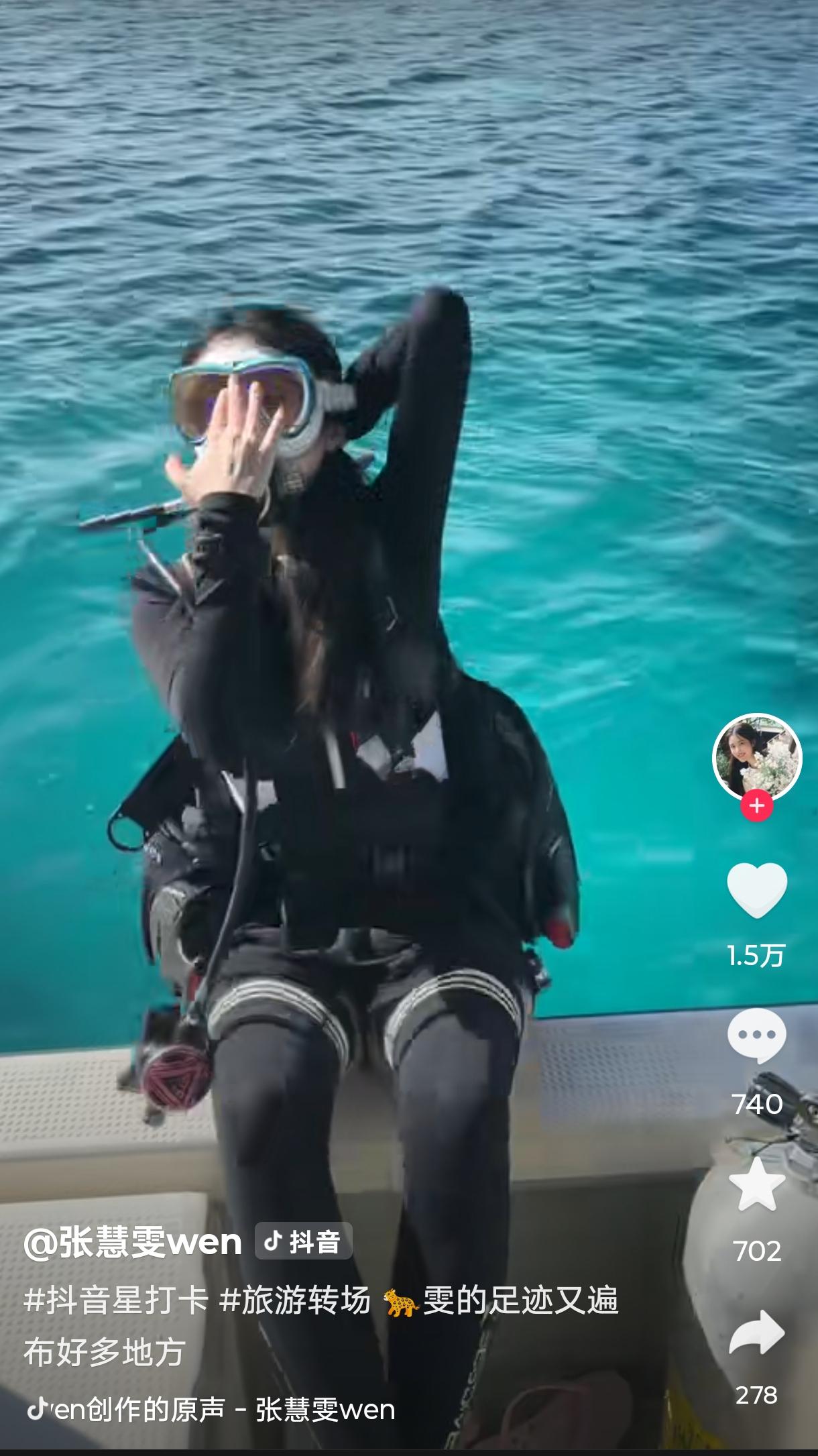 天都异闻录张慧雯玩深潜的样子又美又酷!张慧雯2025年从农历新年后进组,至今几乎无休,连许多活动邀请都推掉了,没时间参加。想爱美食、爱旅游、懂生活、自在的小豹雯了。