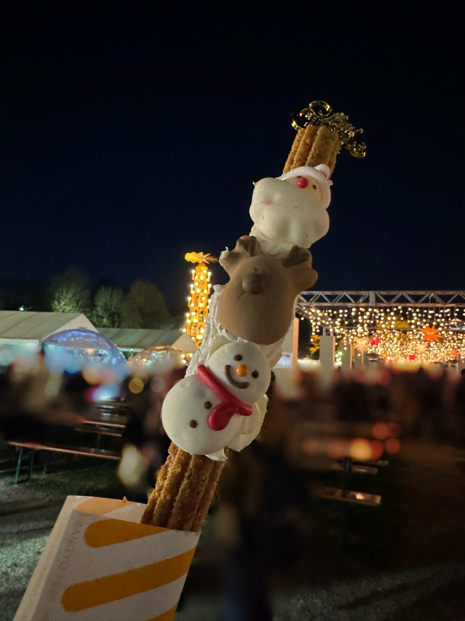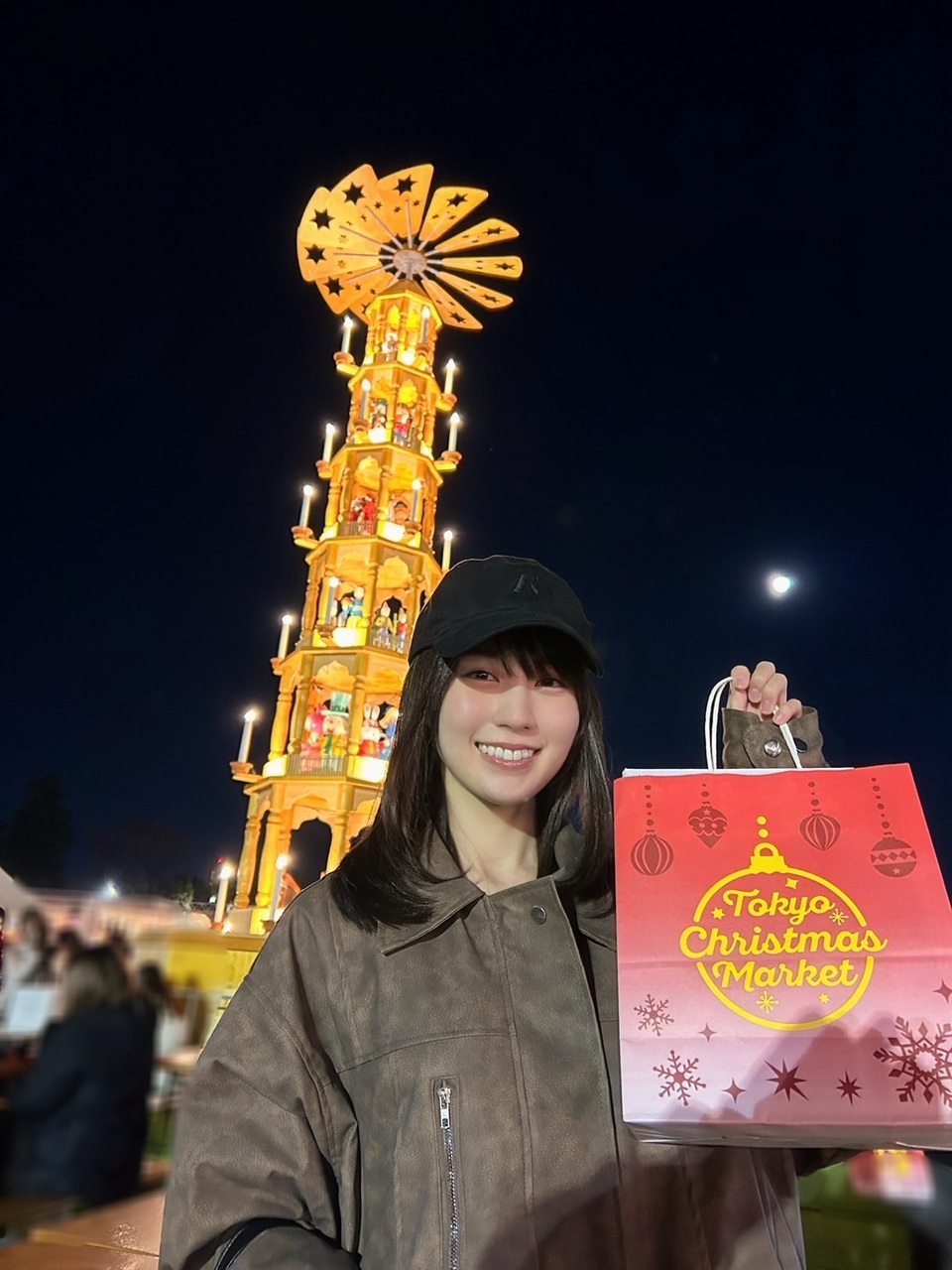 かっきー「少し前、生まれて初めて、母とクリスマスマーケットに行きました!かわいいチュロスがあったので食べました🎄母は私より15センチくらい小さいので、撮ってもらうと下からアングルです。慣れない中いつも写真を撮ってくれます📷最近はどこを見ても街がキラキラしていて幸せです🎄✨クリスマス、好きなんです。世の中に溢れる幸せがいつもより少し多い気がして☃️」