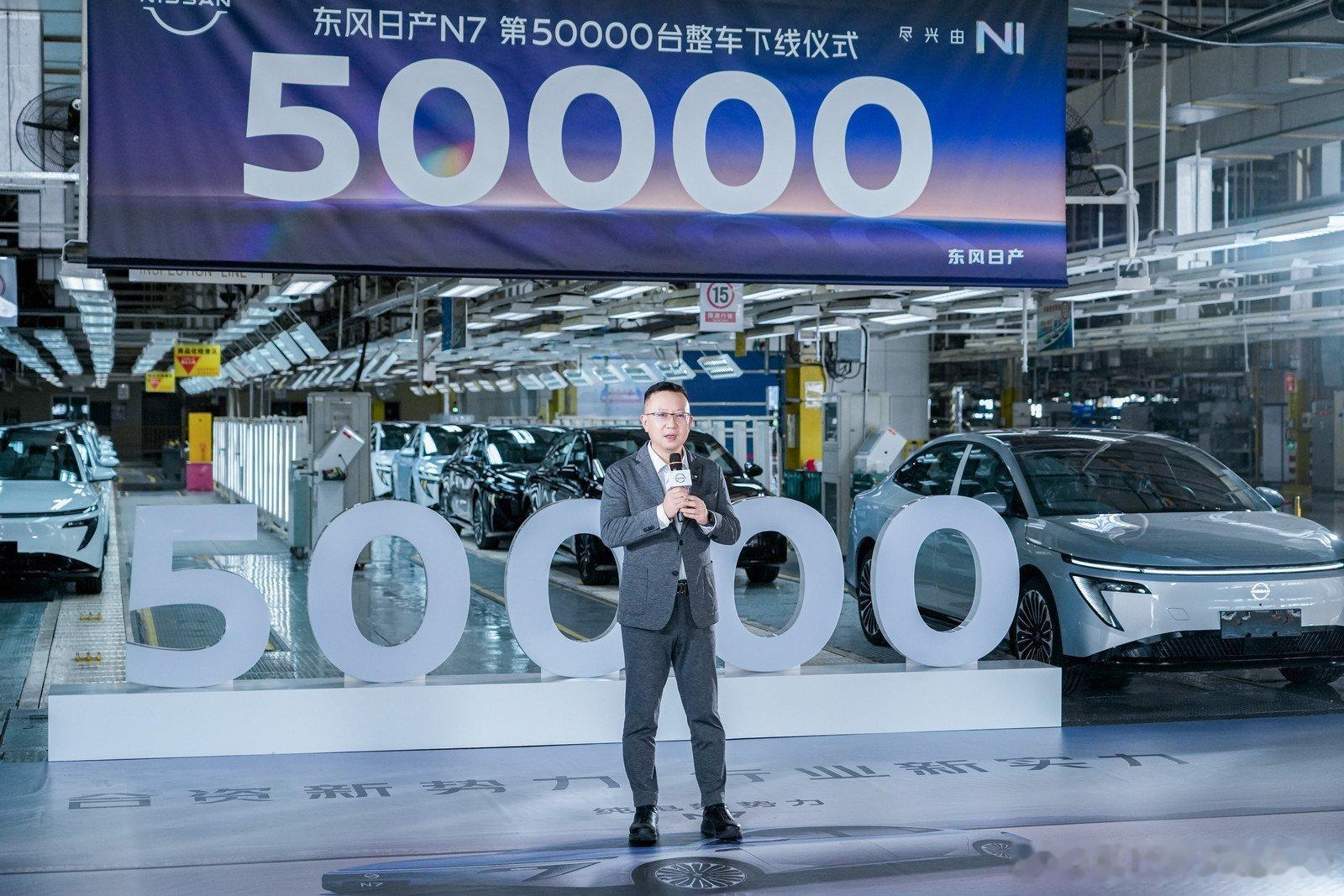 第50000台日产N7正式下线合资纯电爆款200天5万台下线东风日产N7 合资品牌在电动赛道的加速度 由它来展现 5万台下线只是新的起点