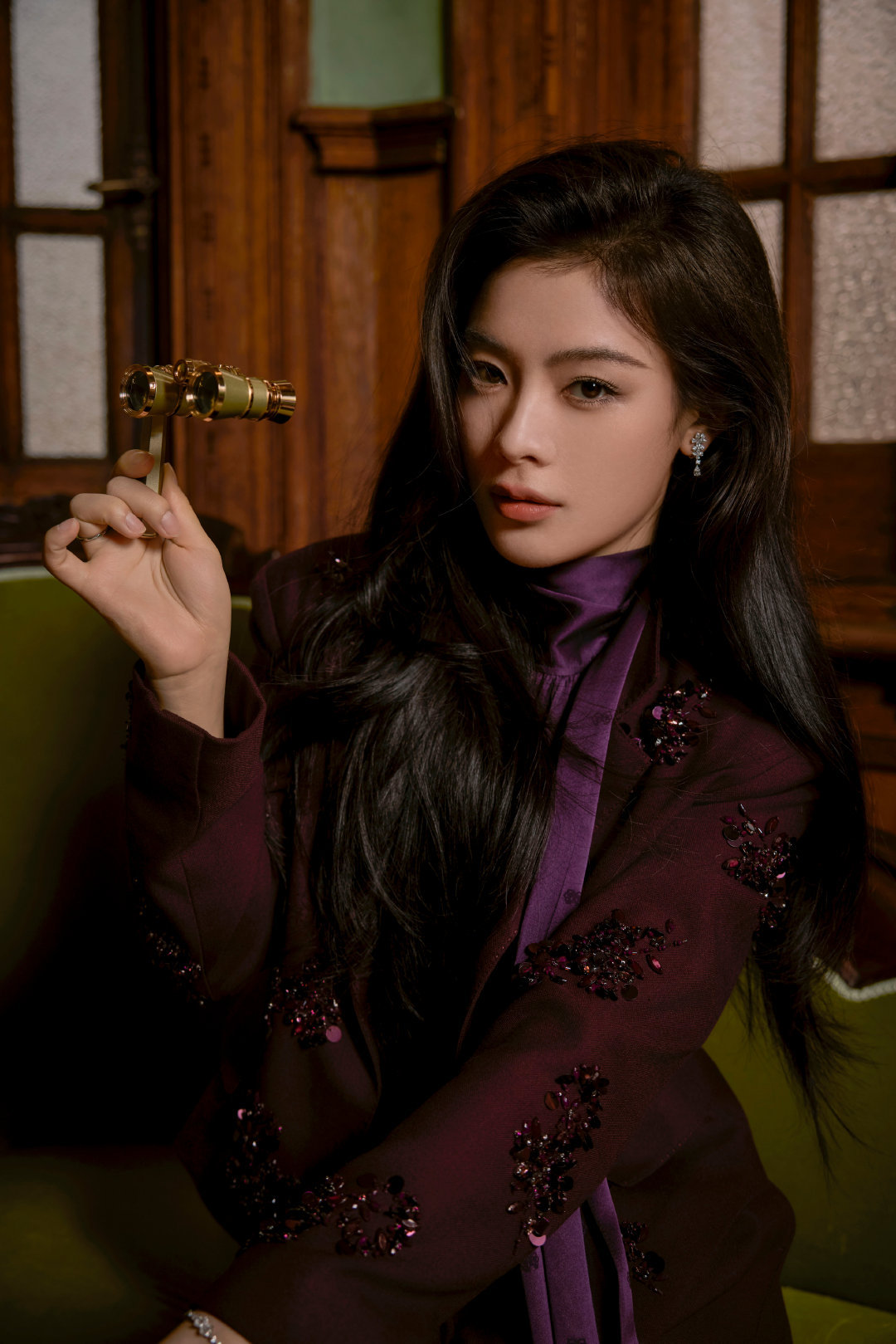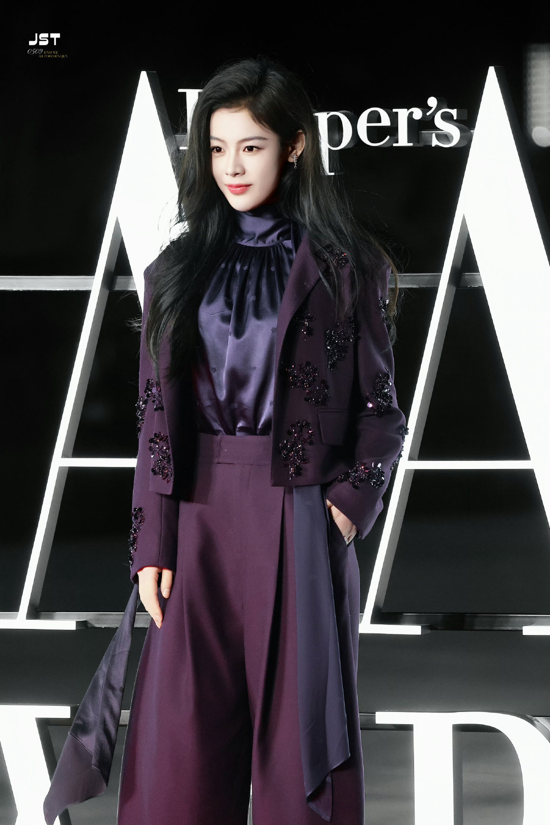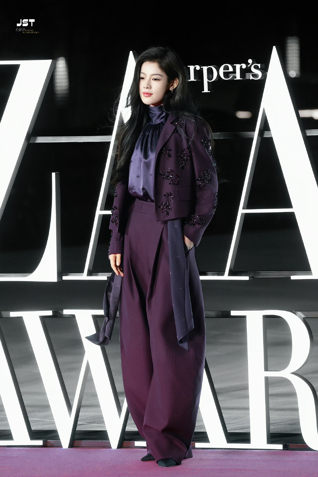 陈丽君|时尚芭莎艺术大赏造型出图,身穿EP YAYING 2025秋冬系列紫色套装,搭配Roger Vivier高跟鞋,摩登复古,浪漫的紫色女郎💜