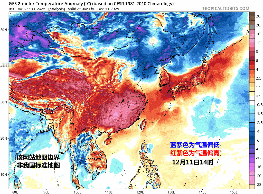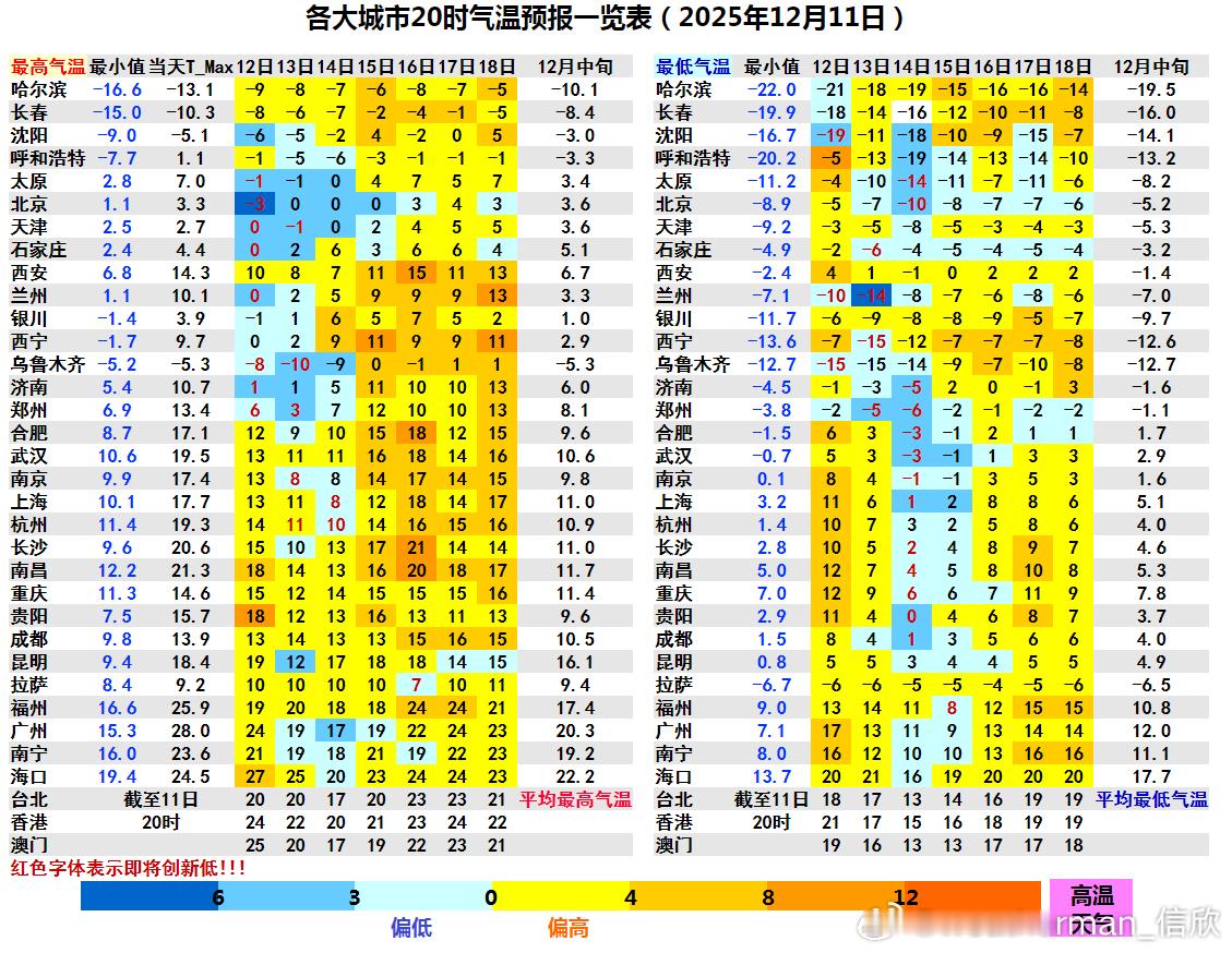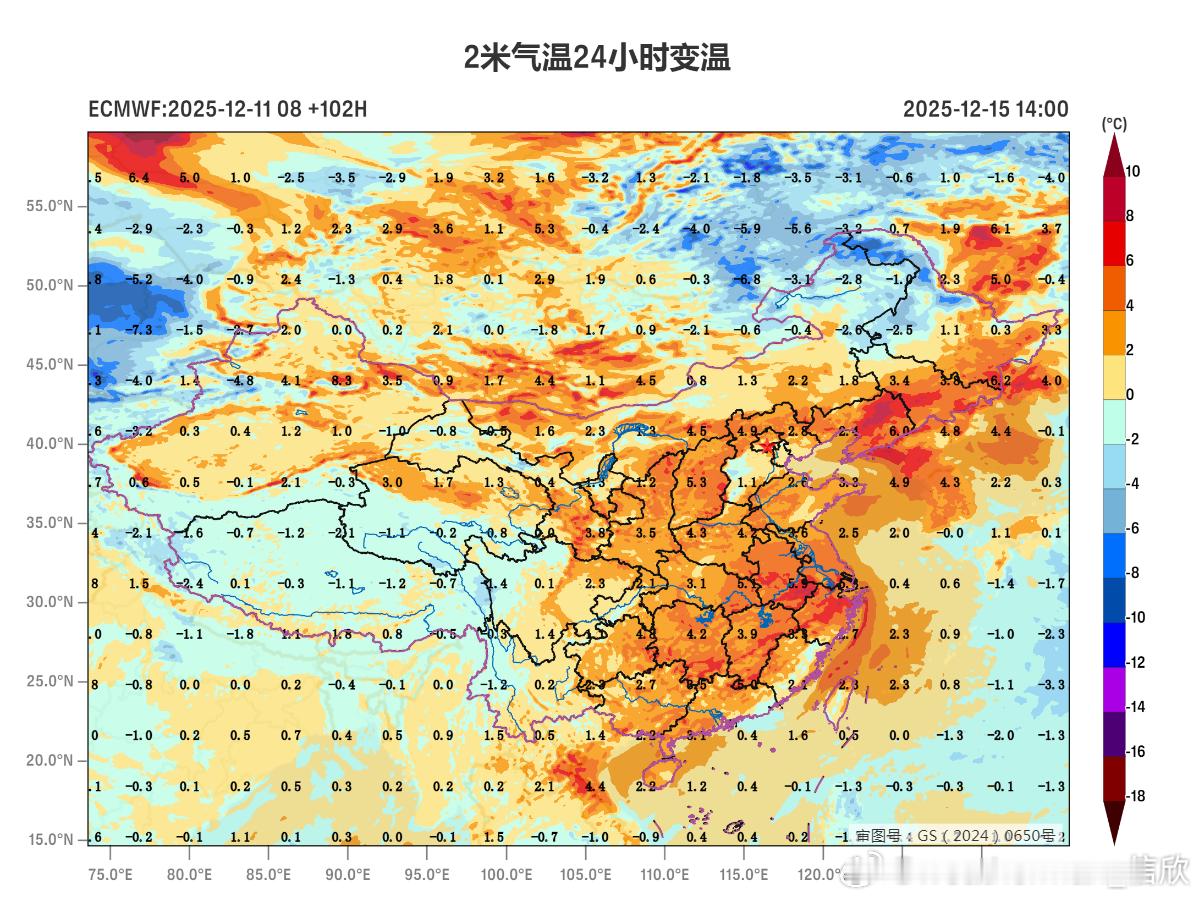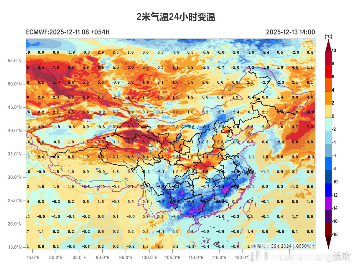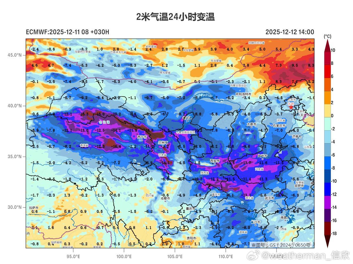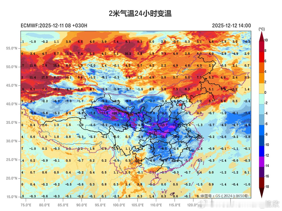 【气温反转再反转】今天在寒潮到来前,浙江湖北四川山西陕西甘肃有19个气象站气温打破12月中旬最高纪录,地级市包括陕西安康、山西运城、临汾。不过明天寒潮到来,配合雨雪,多地气温会骤降。对比14时,青海北部以及甘肃沿祁连山一带、宁夏中南部、陕西南部、湖北西北部、河南中南部、山西南部可能出现12℃以上降温。后天强降温的重点转到江西东部、广西东南部、贵州中部、云南东部一带。而在冷空气过后,明后2天,东北和西北部分地区会率先开始升温。14-15日,我国将迎来普遍的升温。因此今后几天的气温会出现从偏高转偏低再转偏高的快节奏、大幅度的变化,反转再反转。
