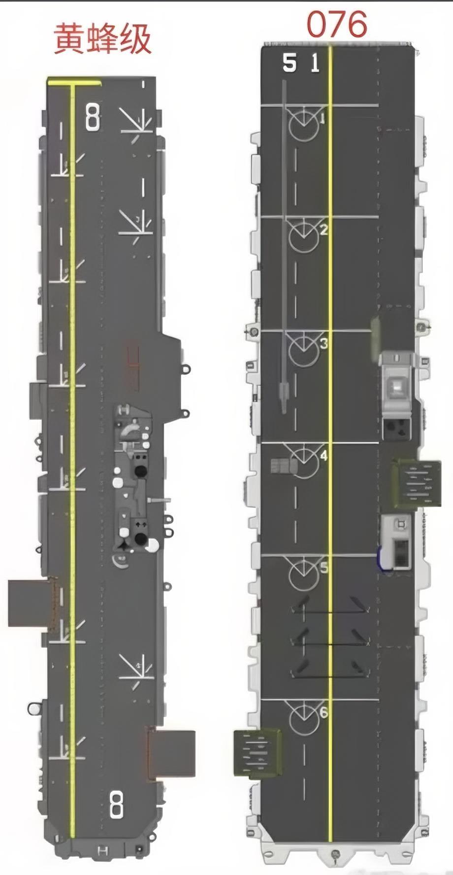 图片右边是中国的076。左边是美国的黄蜂级两栖攻击舰,满载排水量4万多吨,这样一对比就看得出来中国的076有多大了,也能预估一下比他们大出多少排水量了! 图上的是美国海军两栖攻击舰“马金岛号”,它是美国海军"黄蜂级"两栖攻击舰的第八艘,也是该级别的最后一艘。 马金岛号于1998年开始建造,2003年服役。 是黄蜂级中唯一一艘采用燃气轮机+电力推进系统的战舰,而非传统蒸汽动力。马金岛号的最大特点是其动力系统,它是黄蜂级中唯一使用LM2500燃气轮机和电力推进系统的舰艇,这使其在燃油效率、可靠性和维护便利性方面都优于同级其他舰艇。 该舰长约257.3米,宽约42.7米,吃水深度8.1米,满载排水量约41,000吨,可搭载约2,000名海军陆战队员。 航空作战方面可搭载20-30架各类直升机,甲板可同时起降6架直升机,具备短距起降战机V-22"鱼鹰"或F-35B操作能力。 机库面积达2,360平方米,可容纳舰队的航空联队。拥有完整的坞舱,可搭载LCAC气垫登陆艇或传统登陆艇,支持大规模两栖登陆作战。 黄蜂级两栖攻击舰的角色已超越传统的两栖登陆。现在作为远征打击群的核心,它与“宙斯盾”驱逐舰、船坞登陆舰等组成编队,实现了高速机动、快速反应和多域作战。 黄蜂级是美军由海向陆投送力量的关键装备,其“均衡装载”的设计理念和持续升级的能力,使其从单纯的两栖攻击舰,演变为兼具“闪电航母”能力的海上多功能作战中心。不过,我相信这一切都将随着076的服役会打破。