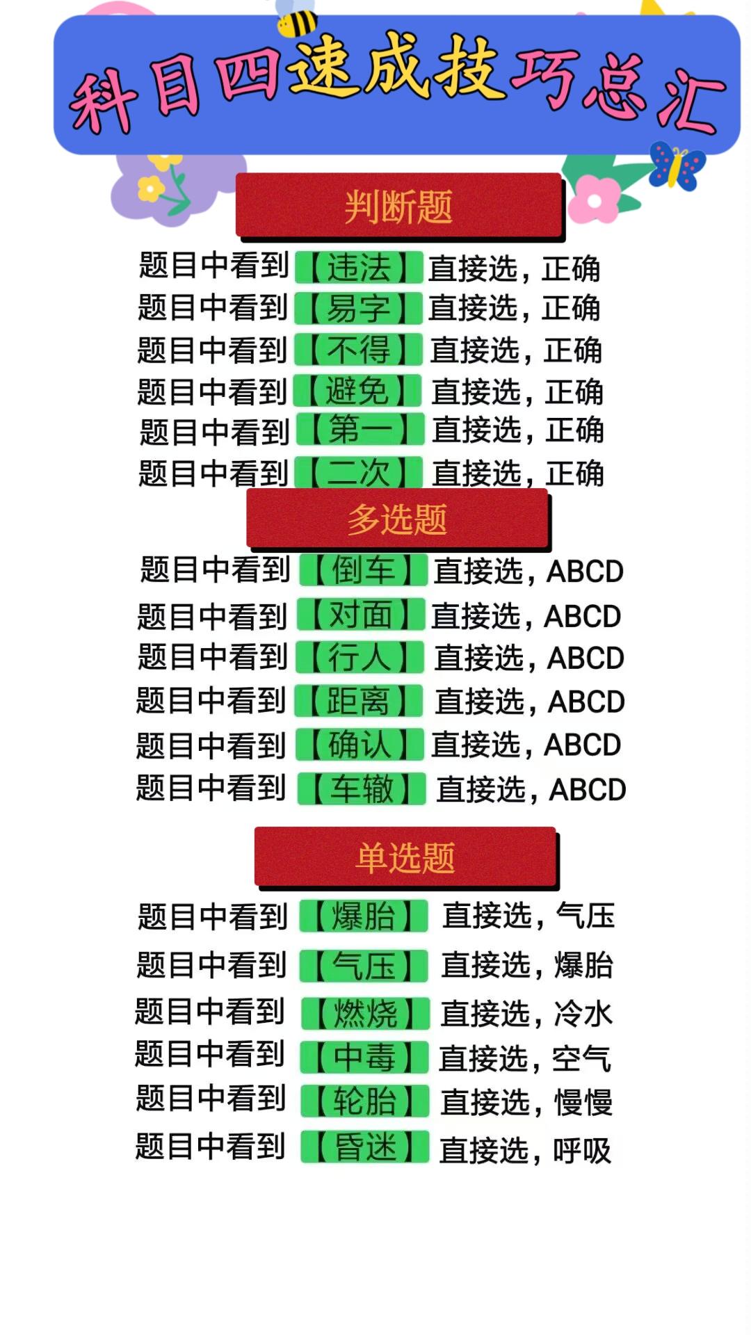 逢考必过 科一科四速成答题技巧 驾校学车 科目一科目四理论 考驾照