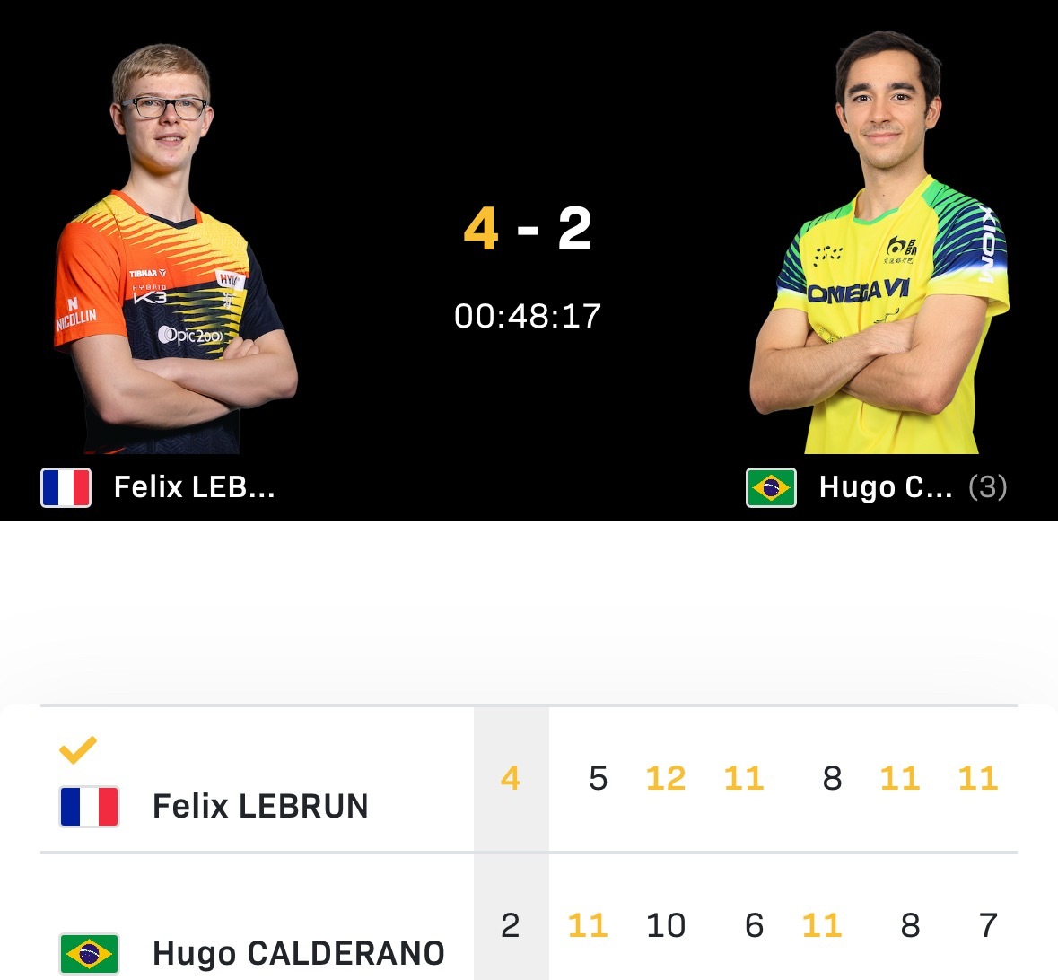 WTT香港总决赛女单1/8决赛孙颖莎vs王艺迪第一局:11:3 1-0 第二局: