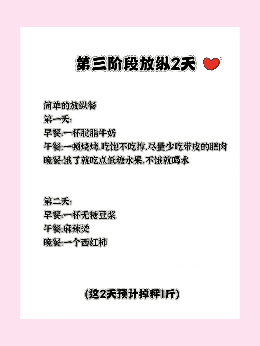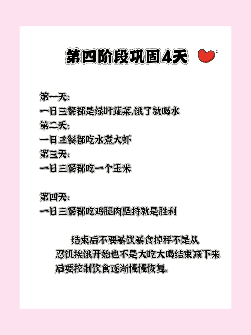 最狠减肥法[捂脸R][捂脸R][捂脸R],恭喜你,17天20斤坚持下去就是胜利了,一共五个阶段,受不了第一阶段的可以放弃,但是效果会减少………………………………………………………