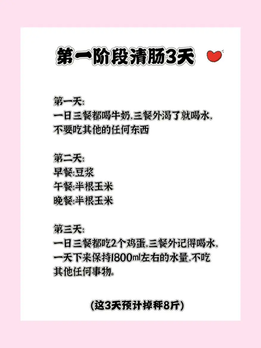 一日三餐都吃2个鸡蛋,三餐外记得喝水,一天下来保持1800ml左右的水量,不吃其他任何事物。