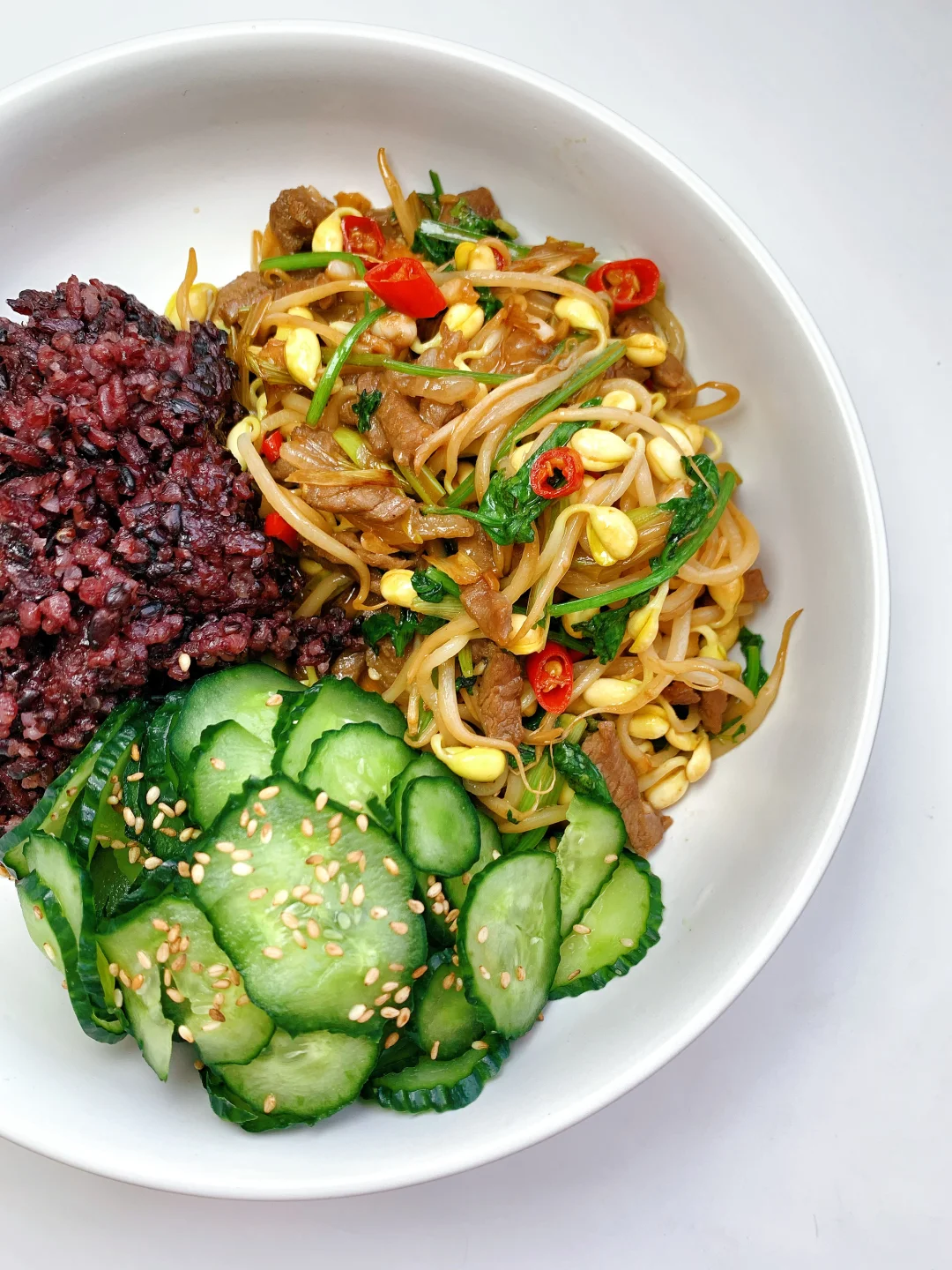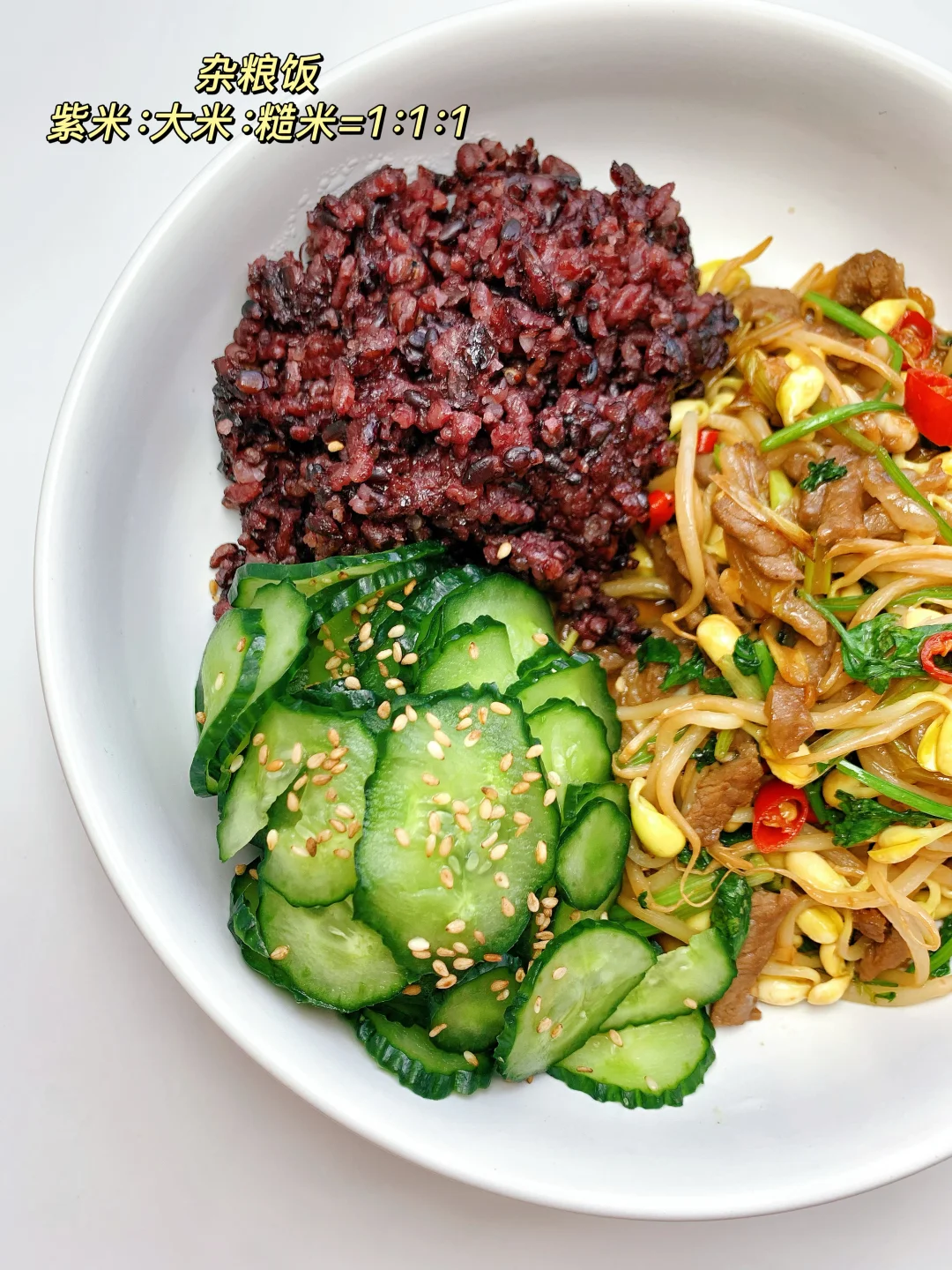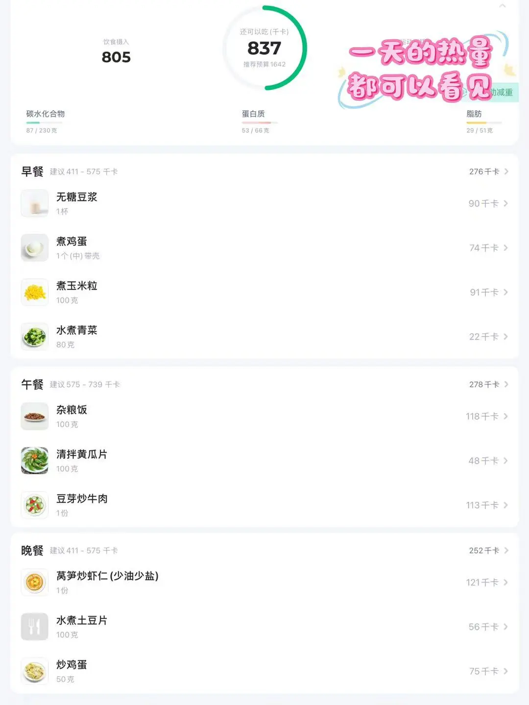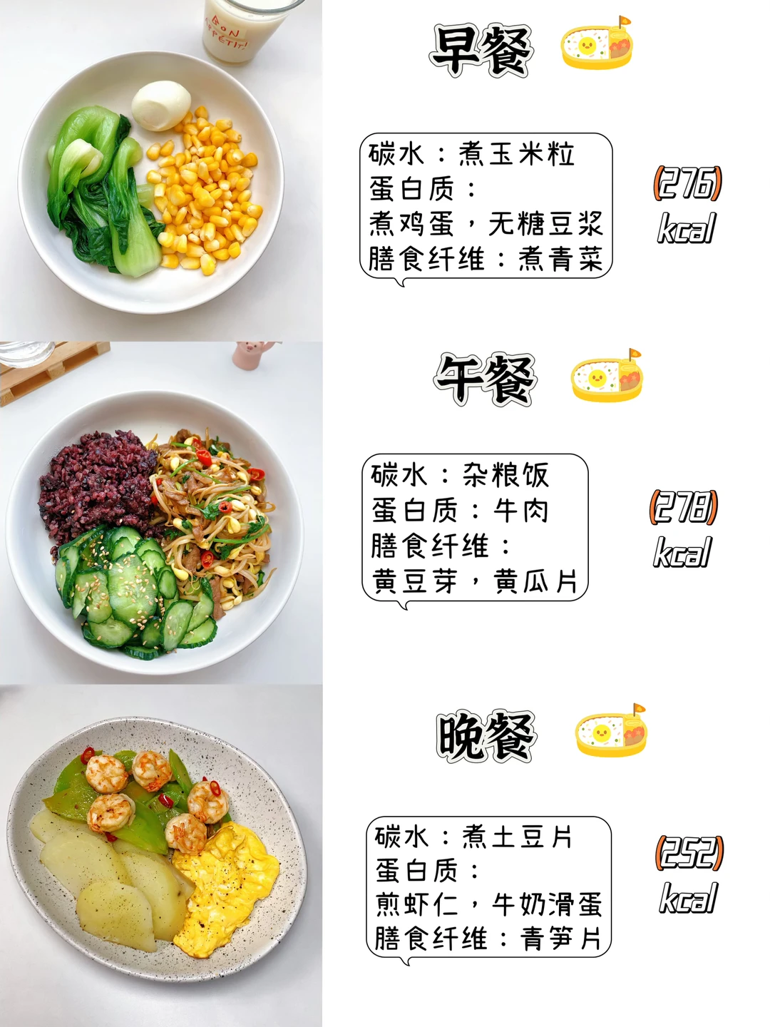 一日三餐🥣 早餐:无糖豆浆煮青菜,煮玉米粒,煮鸡蛋 午餐:杂粮饭,黄豆芽炒牛肉,盐渍黄瓜片 晚餐:水煮土豆片,牛奶滑蛋,青笋炒虾仁 [向右R]喜欢的请看上图,还附了一天食谱热量表~ 💥我的生活化减脂餐,控糖低碳 欢迎进入我的主页收藏………………………………