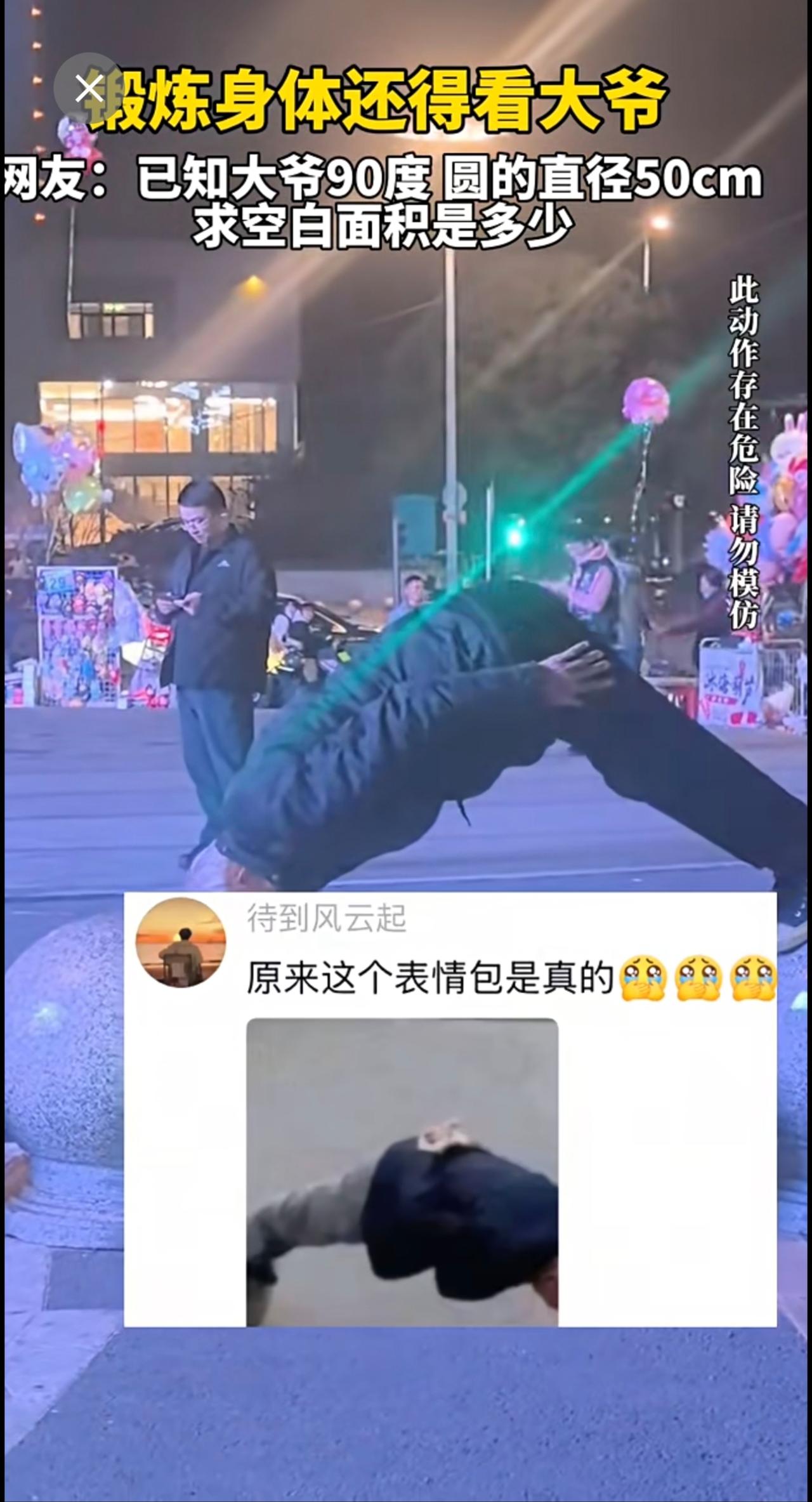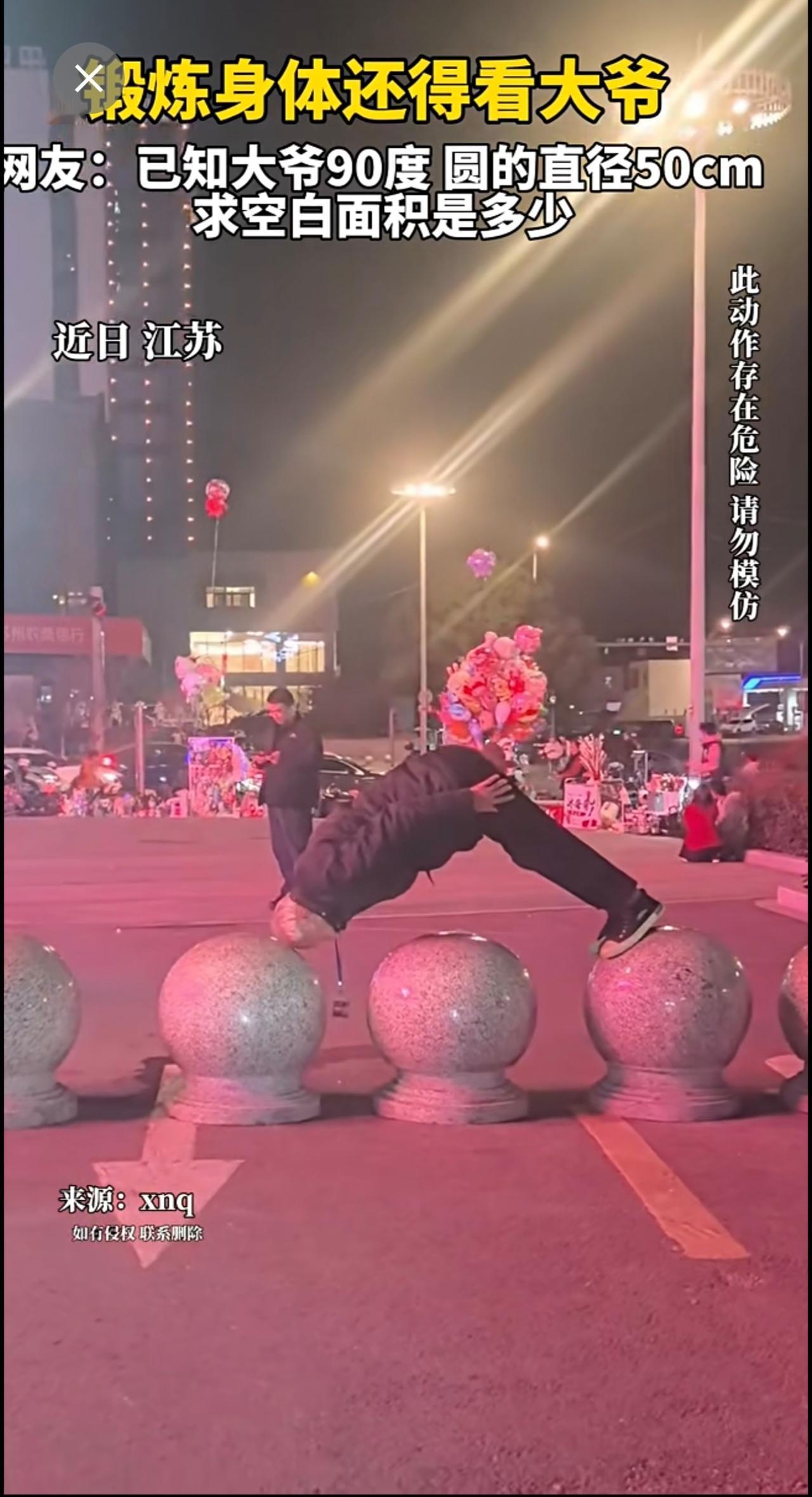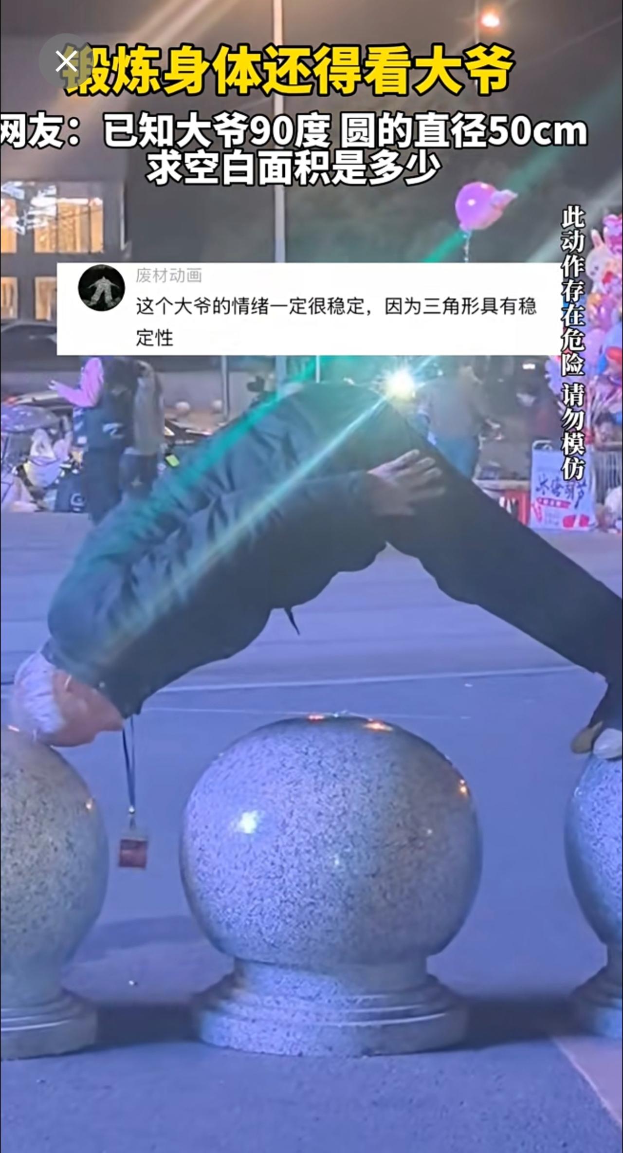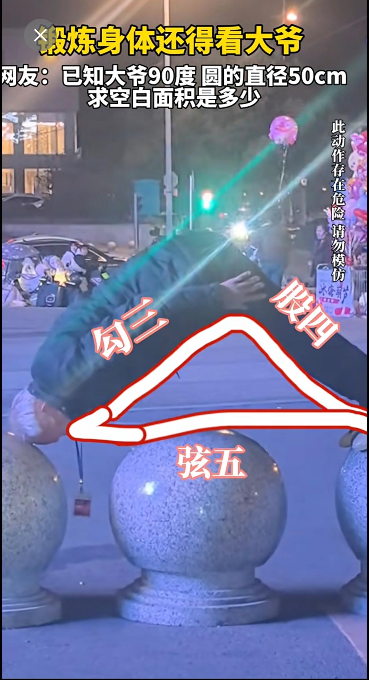 锻炼身体还得看大爷 网友:已知大爷90度 圆的直径50cm 求空白面积是多少