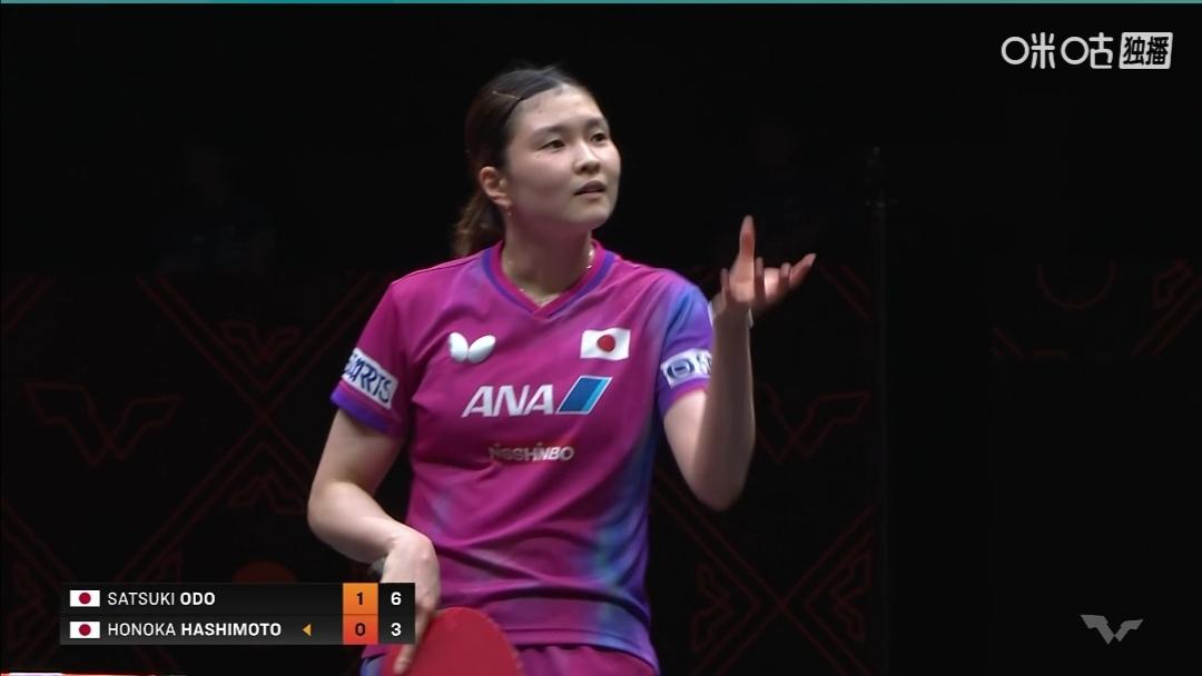 1/8决赛,日本女乒六人。四人一轮游!两人还是从“内战”中杀出的! WTT香港总决赛1/8决赛 日本女乒参加WTT香港总决赛单打多达6人,仅比国乒少1人。 从一个侧面说明日本女乒实力接近。 但还是国乒技高一筹,拥有单打世界排名前五顶尖高手! 1/8决赛日乒四人一轮游! 外战落荒而逃 1。张本美和2:4(6-11;8-11;13-11;6-11;11-9;7-11)败给2号种子国乒王曼昱。 2。早田希娜0:4(5-11;6-11;6-11;5-11)脆败给国乒小将蒯曼。 ~~~~~~~ 内战消耗损员: 1。大藤沙月4:0(11-8;11-7;11-6;12-10)零封桥木帆乃香。 2。长崎美柚4:3(10-12;14-12;8-11;9-11;11-6;13-11;11-4)胜长崎美柚。 至此日乒只剩下大藤沙月和长崎美柚两名选手了,并且俩人都是“内战”中杀出来的! 1/4决赛 19:10 蒯曼Vs日本大藤沙月 20:40 孙颖莎Vs日本长崎美柚 中国队加油!