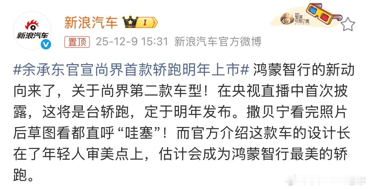 尚界明年会上轿跑,面向的是年轻人轿跑显然不是鸿蒙智行的舒适区,近半年轿跑智界S7的销量为5866台,占鸿蒙智行销量的1.69%尚界的轿跑定位应该在智界S7以下,也就是20w以下,现在的问题就是鸿蒙智行到底能不能吸引轿跑用户尚界大v聊车新能源汽车