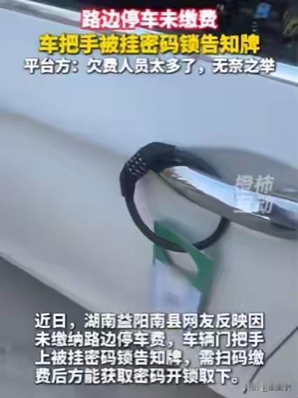 路侧泊位停车收费,所谓的治乱治堵,不过只是走了样的“生意经”! 前两天,湖南益阳南县的一位车主发现,自己因为欠缴路边停车费,车的门把手上被人挂了个带密码锁的告知牌。想取下?扫码缴费才给密码。虽说这不影响开车,但爱车上挂着这么个玩意儿,谁心里不膈应?平台倒说这是“告知挂牌”,还强调“可自行剪除”,没强制。可这架势,跟温和的“告知”实在不太沾边。 这事儿能吵起来,是因为它戳中了很多人的心窝子。路边停车收费,如今是个全国性的热议话题。官方理由很充分:车越来越多,路就那么多,收费是为了用价格杠杆提高车位周转率,治乱治堵。听起来是为了公共利益,没毛病。 可一到现实里,味道常就变了。很多车主感觉自己像进了个“迷糊阵”。在天津,有人把车停进划了线的车位,四周找不到任何收费公示牌,也看不见管理员,开走时才发现车窗上贴了缴费单。更夸张的是,有人时隔近10个月才突然收到催缴通知,连自己是否停过车都记不清了。说好的“智慧停车”,在催缴时显得挺“智能”,可在保障车主知情权这事上,却常常“失了灵”。管理随性、通知滞后,这让收费的正当性大打折扣。 大家反感的,从来不是合理的收费本身。路侧泊位是公共资源,占用付费,道理谁都懂。大家憋屈的是两点:一是过程不透明,像南县这样,突然用上“密码锁”催缴,或是像有些地方,牌子都不立就默默计费,充满了不被尊重的感觉。二是钱的去向成谜。收上来的钱,是真如文件所说用于“停车设施维护提升和交通建设”了,还是成了一笔糊涂账?不少地方缺乏令人信服的公开。 当管理缺失了服务的初心,只剩下收钱的硬度,矛盾必然爆发。南县平台自己也承认,是“经营压力”下借鉴的“土办法”。这恰恰说明,简单粗暴的围追堵截,解决不了根本问题。 说到底,城市治理需要智慧,也更需要温度。把公共道路资源用来经营,合法性来源于公共利益。这份“公益”既要体现在用收费调节交通秩序上,更要体现在管理的公开透明、服务的及时人性上。如果只学会了架摄像头计费和花样催缴,却忘了立好一块明白的公示牌、做好一次及时的提醒,那所谓的“智慧”,或许只是走了样的“生意经”。 你在路上停车时,遇到过哪些说不出的烦恼?你觉得怎样的停车收费和管理方式,才能真正让你心服口服?车主拒付停车费 违停锁 道路停车收费