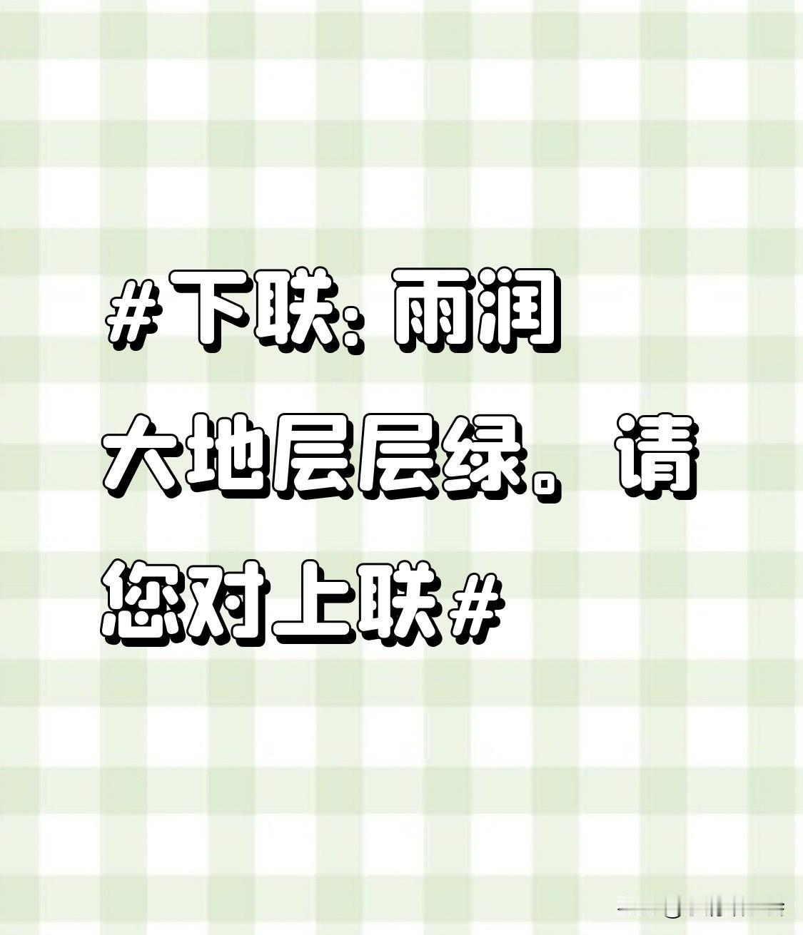 看到“雨润大地层层绿”这句下联,瞬间来了兴致。对联讲究对仗工整、意境相衬。 我对“风拂青山处处幽”。“风”对应“雨”,都是自然气象;“拂”对“润”,一个轻柔地抚动,一个悄然地滋润;“青山”与“大地”,一为山峦,一为广袤地面,空间上相互呼应;“处处幽”和“层层绿”,叠词运用巧妙,“幽”体现出青山的宁静深远,“绿”描绘出大地的生机盎然,整体画面感十足,和下联的清新意境相得益彰。