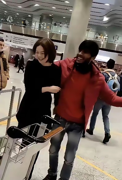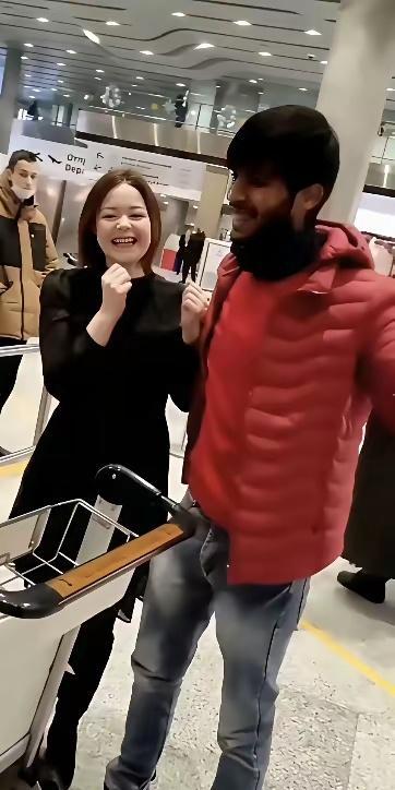 富婆大姐机场看到自己印度男朋友,高兴跳起来,直言他很健壮,在一起很幸福。