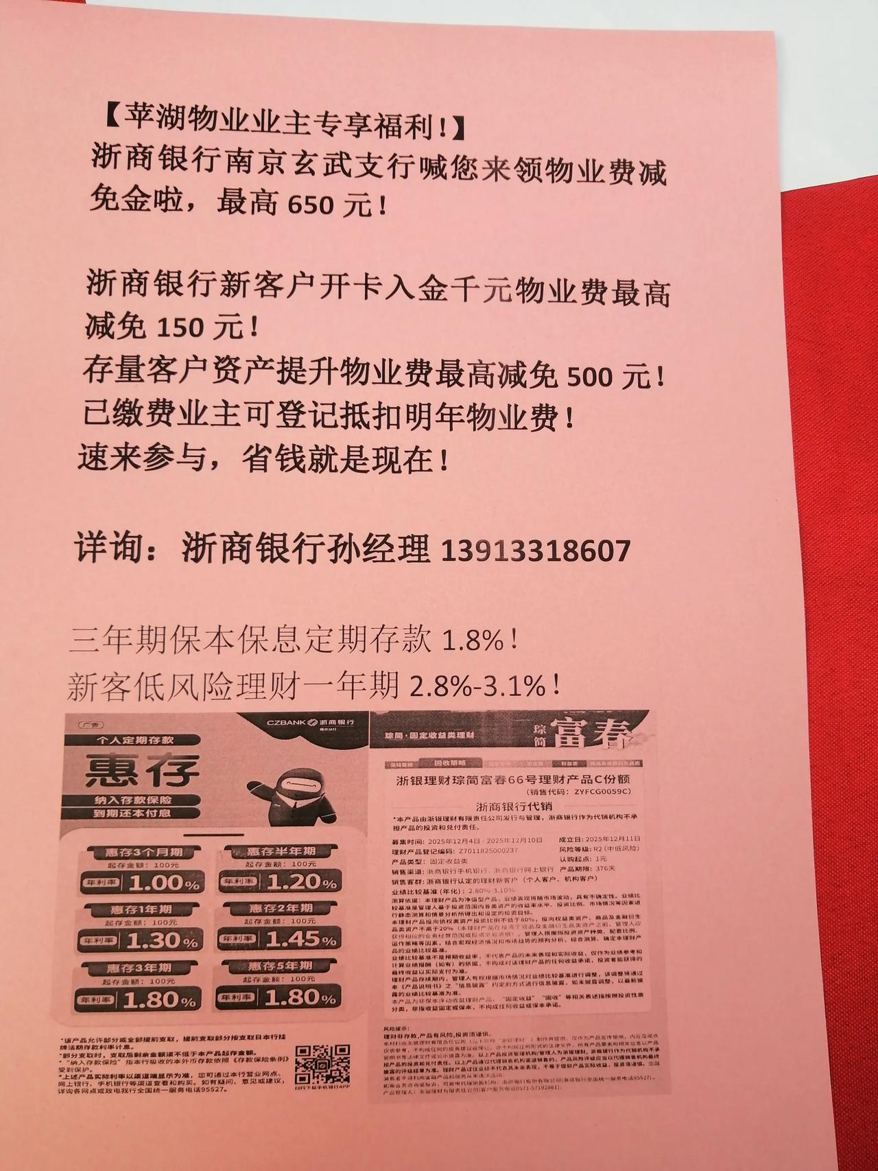 浙商银行送温情 寒风凛冽,笑脸相迎。 昨日上午,苹湖物业业主专享福利来袭!我也有幸领取到一份,福利虽微,情义与服务却价值无量。 浙商银行作为十二家全国性股份制商业银行之一,于2004年8月开业,总部坐落于杭州,是全国第13家“A+H”上市银行。其前身为浙江商业银行,秉持“善本金融”理念,业务覆盖公司金融、小微金融及金融科技应用领域,在全国设有360多家网点。