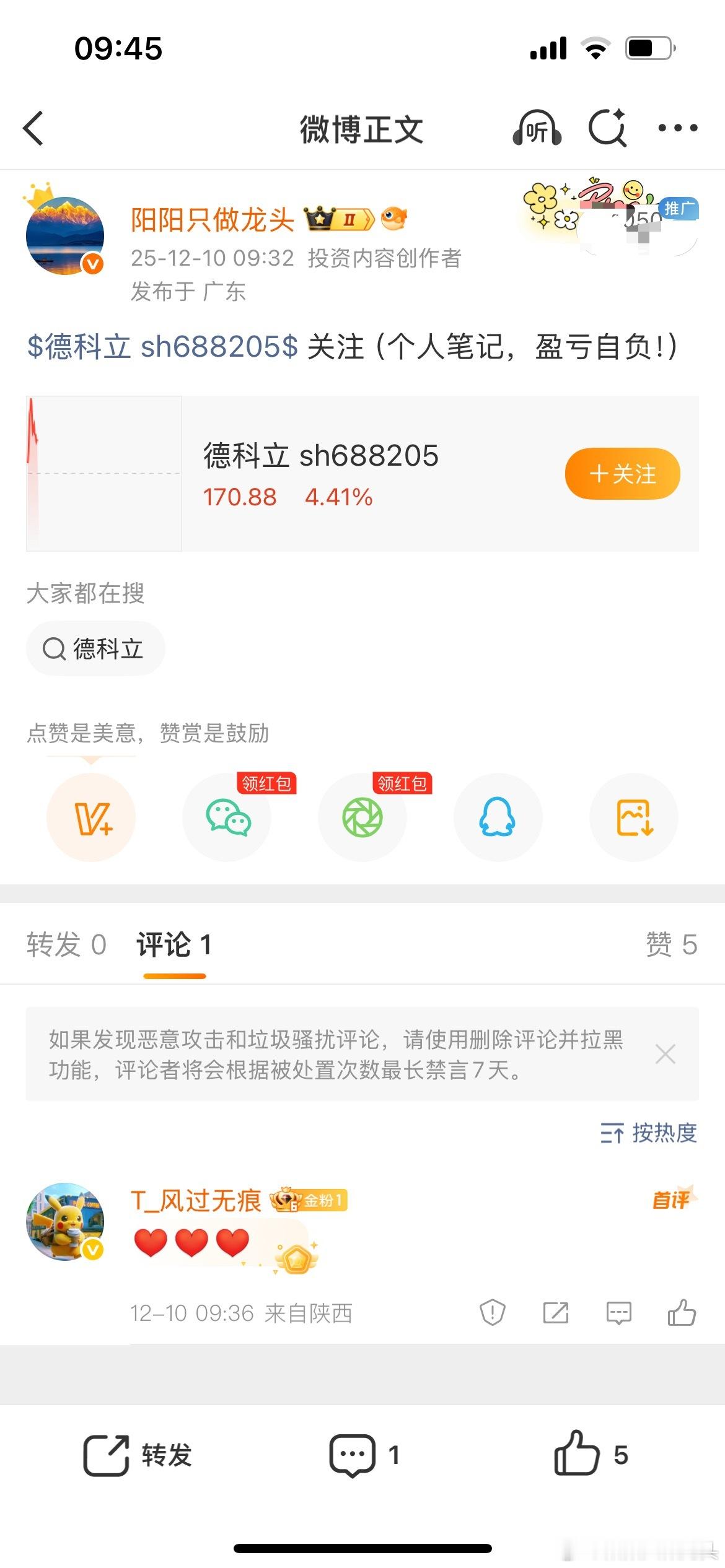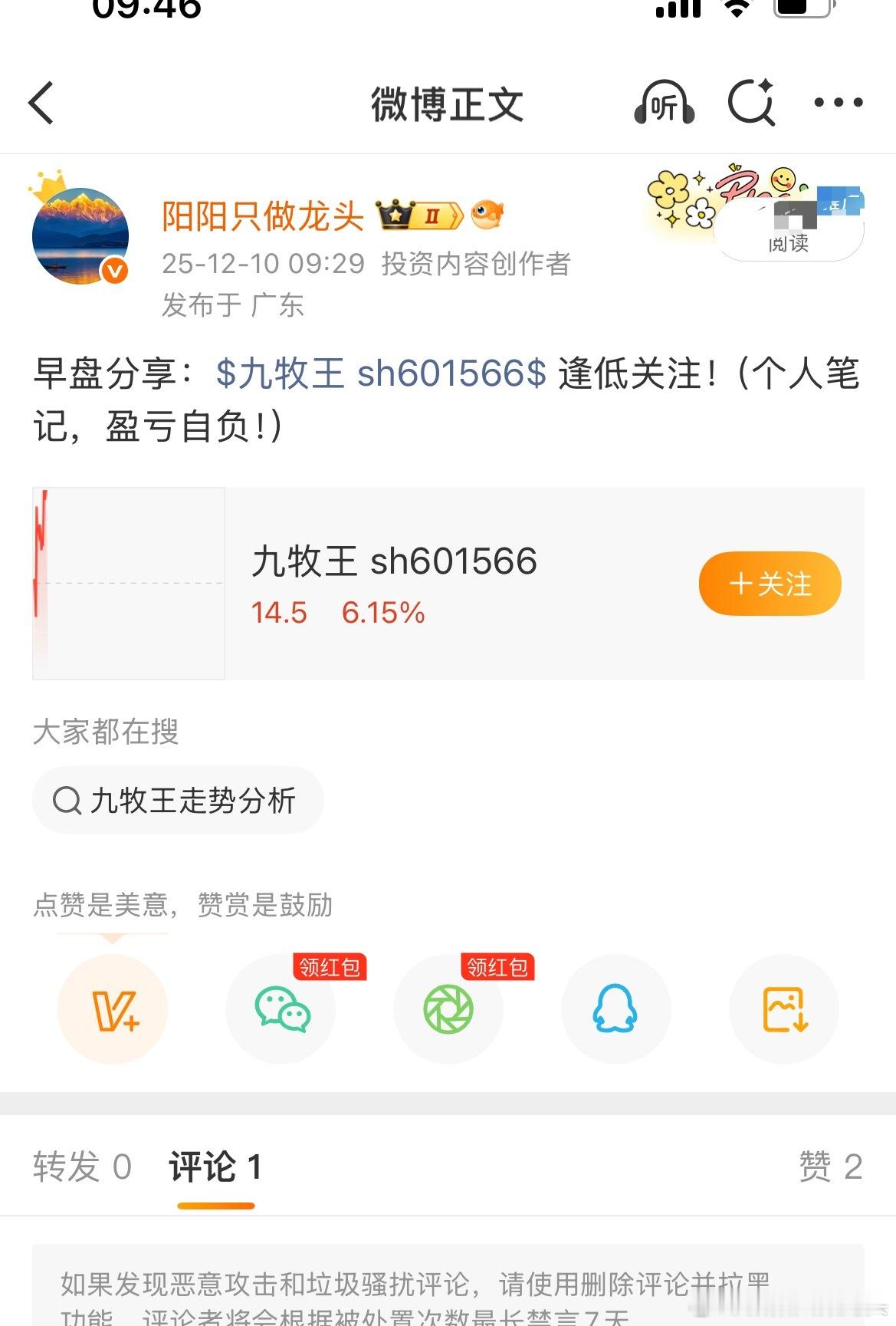 周三分享德科立$九牧王 sh601566$ 纷纷大涨阳阳已选好一支20cm大牛🐮🐮私信报名上车!名额有限哦!A股
