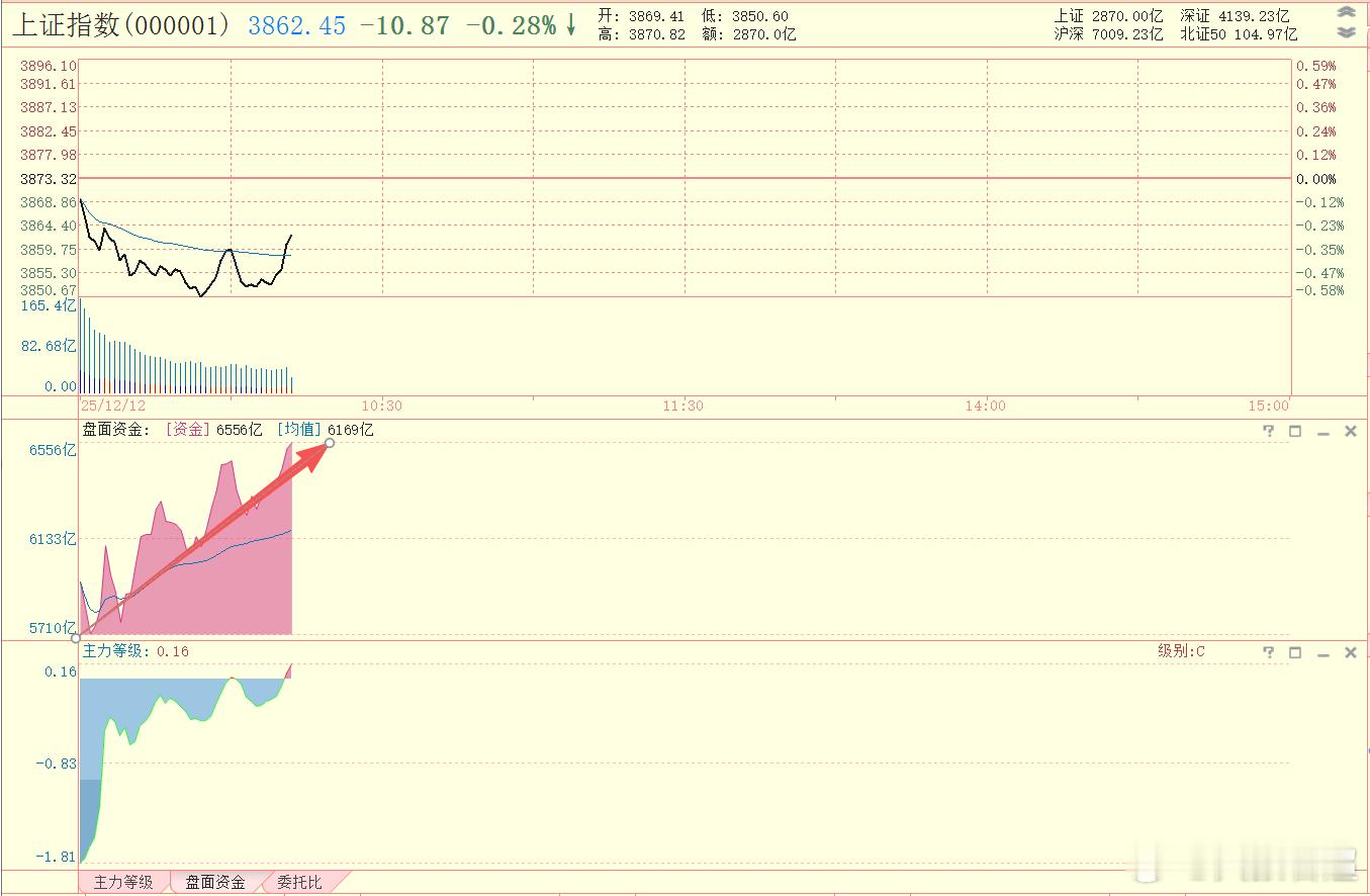 指数在0轴线附近,盘面资金顶背离。不过大单还强势。